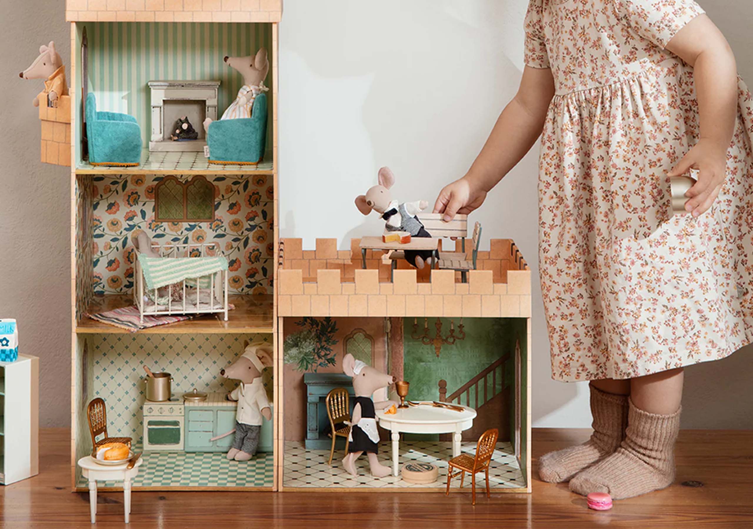 Maileg is a brand of charming Danish-designed toys created to inspire children. In a busy world of bright lights, bells and whistles, where new stories are continually impressed upon us. Maileg is a world in which matchboxes can be beds for mice; princesses make perfect teatime companions; and adventures can be found on a friendly forest walk. It is a world where cats and mice are friends. Ours is a world of childhood imagination – and this is a world we value.
