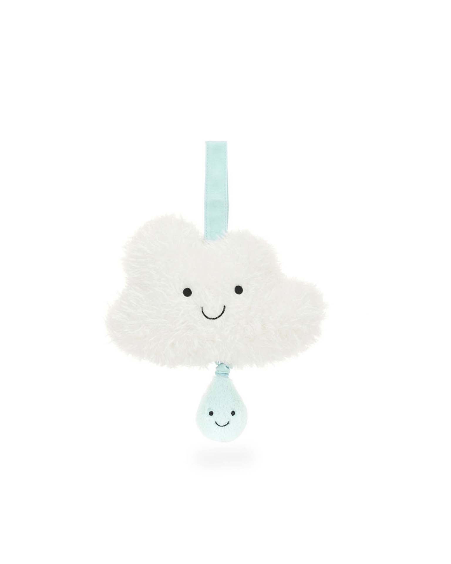 Amuseables Stratto Cloud Musical Pull brings calm, cheer and charm to any nursery! Fasten to crib, cot or pram with the hook and loop fasteners, then pull gently on the radiant blue raindrop: cheerful Stratto cloud will serenade baby with an original Jellycat lullaby.