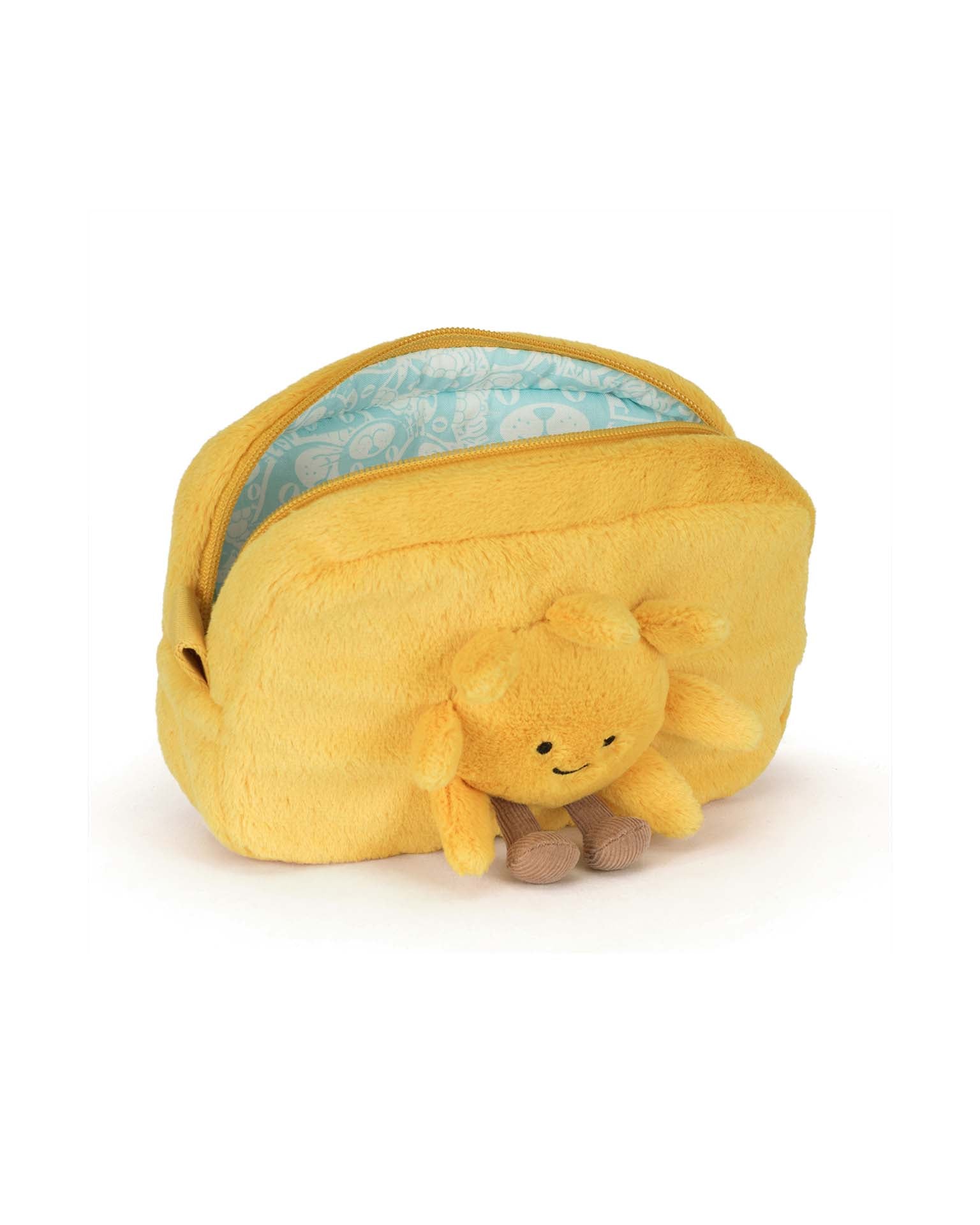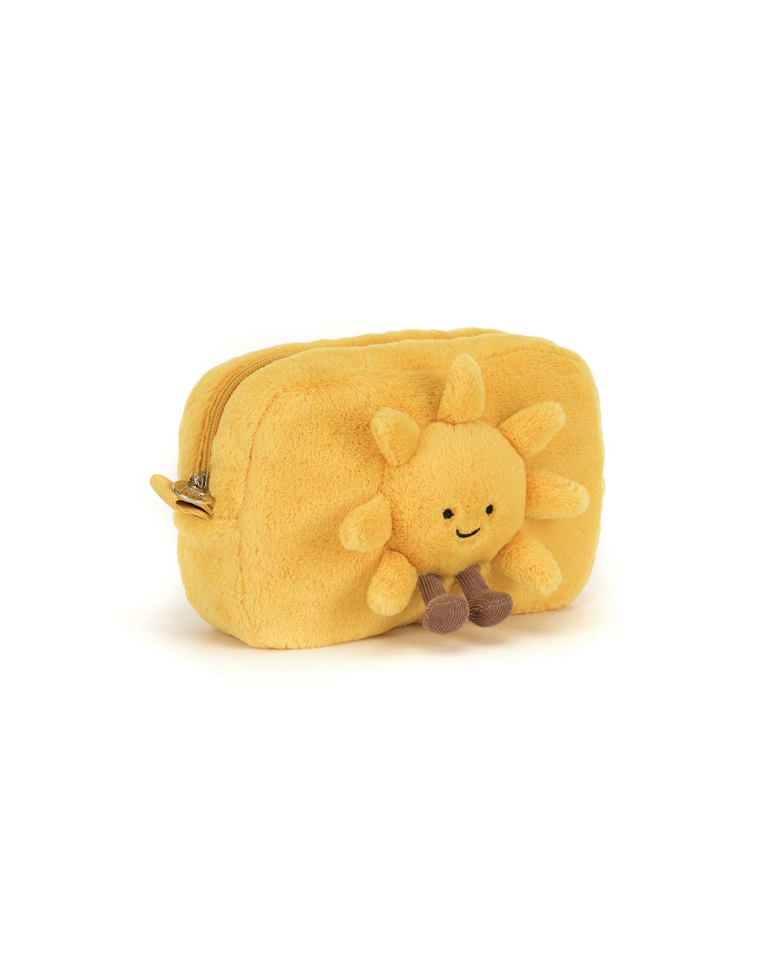 Consider Amuseables Sun Pouch your pocketful of portable sunshine… Finished with yellow fur, tiny boots and a zip-top close, this accessory staple is modeled after Amuseables Sun: amateur weather presenter (her motto: optimism first, accuracy second) and general joy to be around. Keep your essentials on hand and step out shining – no matter the weather outside!