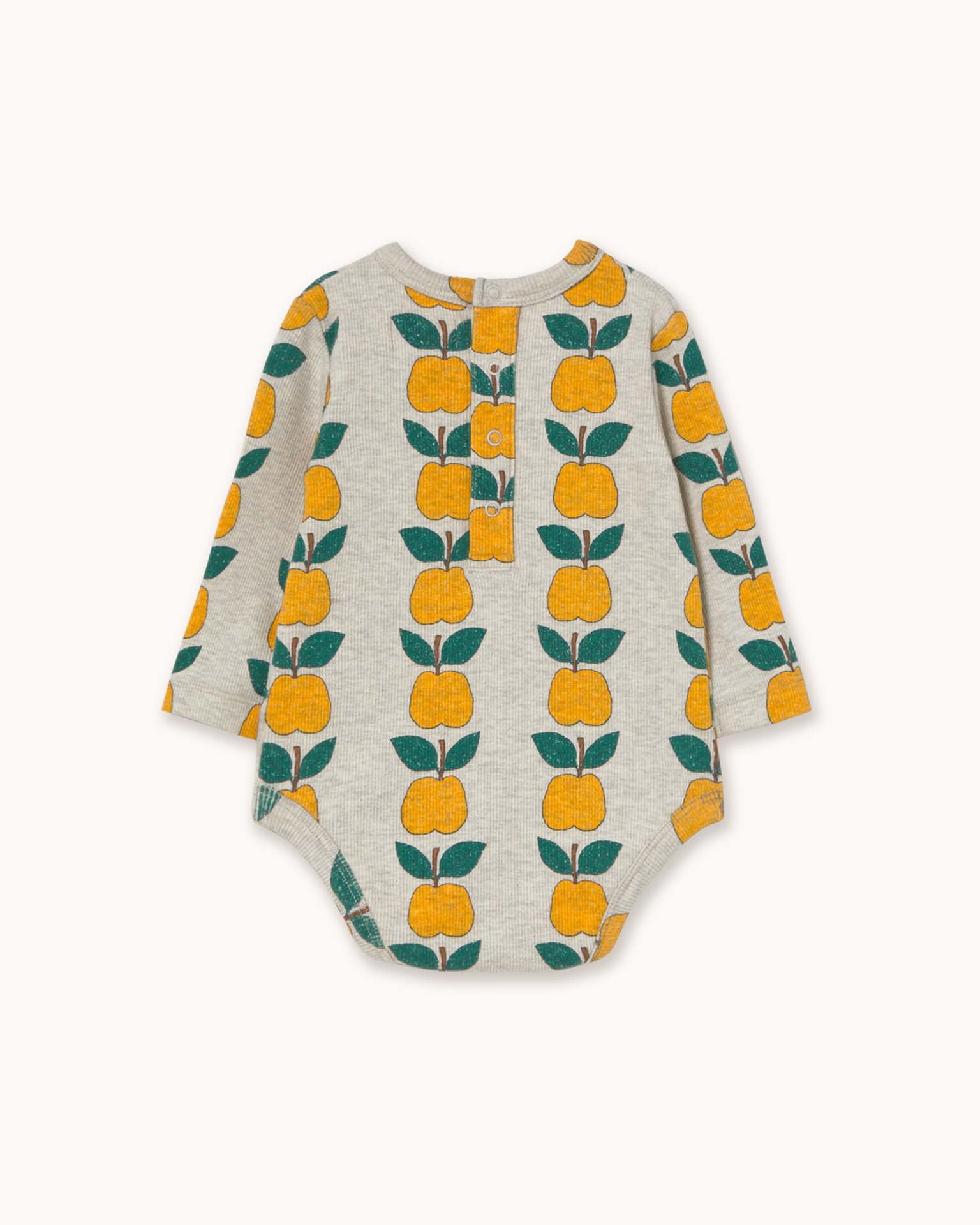 This ribbed bodysuit from Tiny Cottons features the sweet yellow apple print that we love so much. Pair this one piece with the apples baby rib pants for a complete outfit, perfect for gifting to a fall baby!