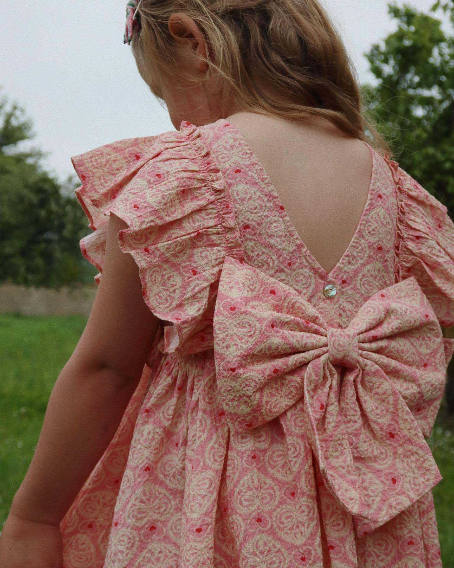 ava bow dress in lacy pink