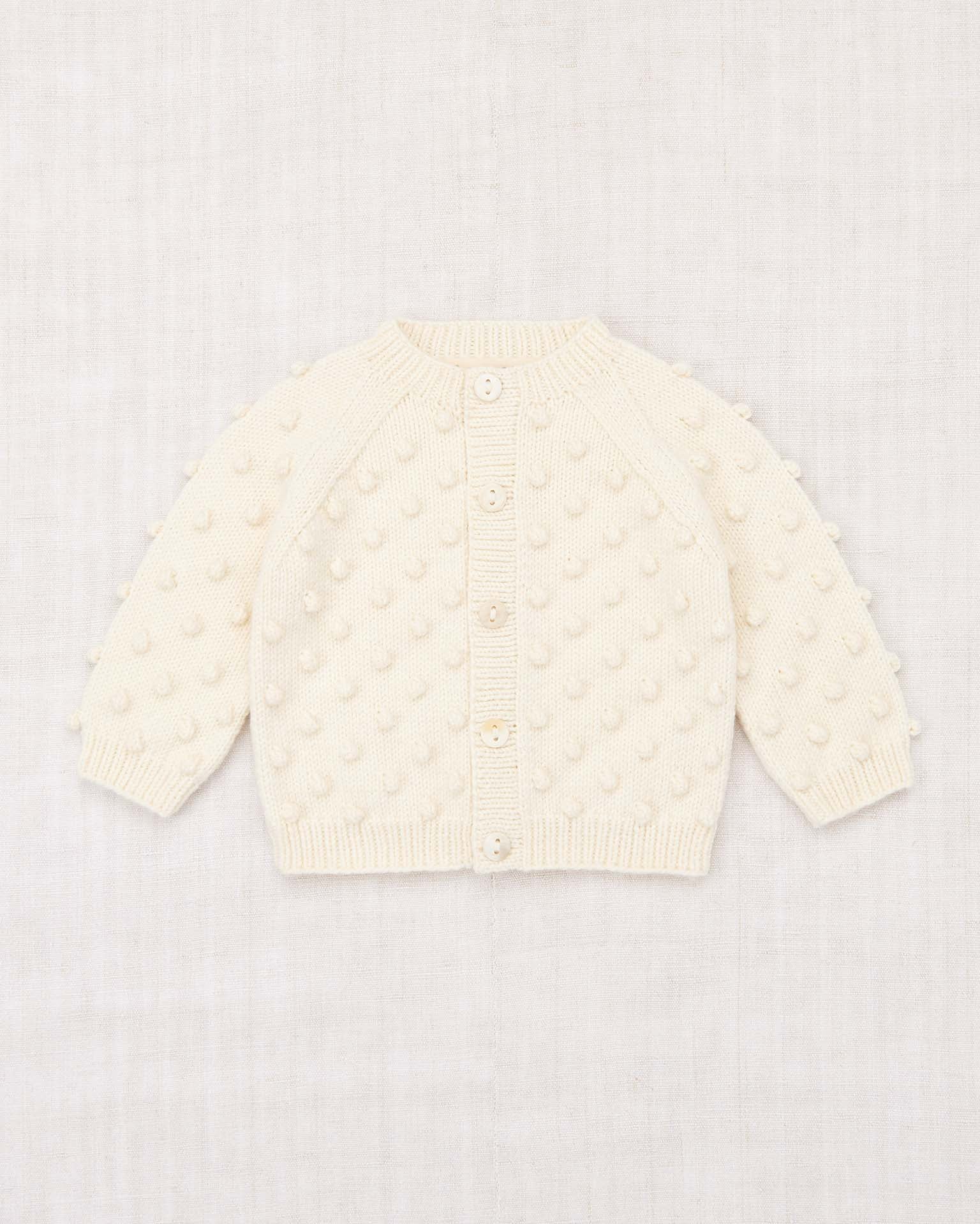 A roomy hand-knit cardigan in our signature all-over popcorn stitch. Featuring a cozy silhouette, ribbed trim and hem, and horn button closure.