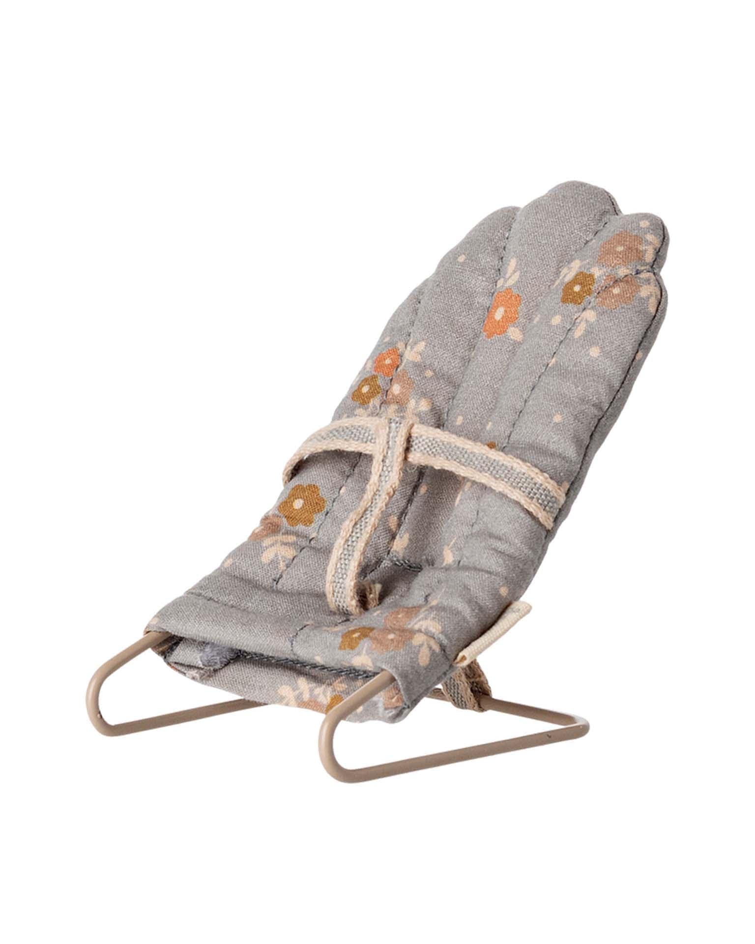 With this babysitter, it is easy to put your little friends to sleep. The base is made of metal and covered with the most lovely fabric. The chair fits micro-sized rabbits/bunnies perfectly.