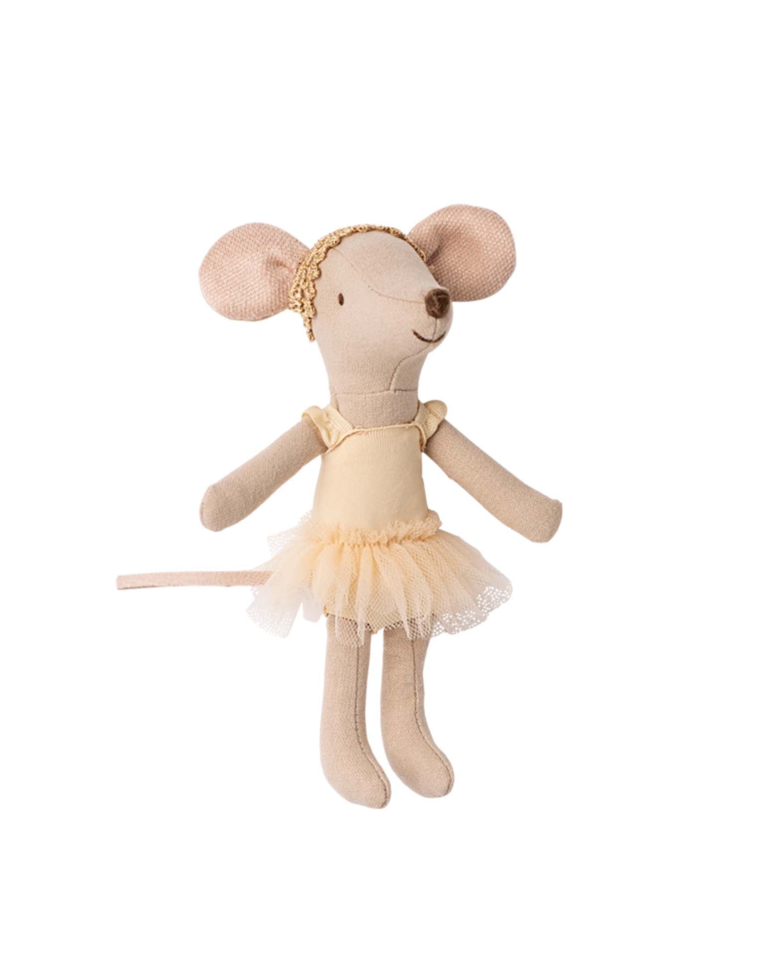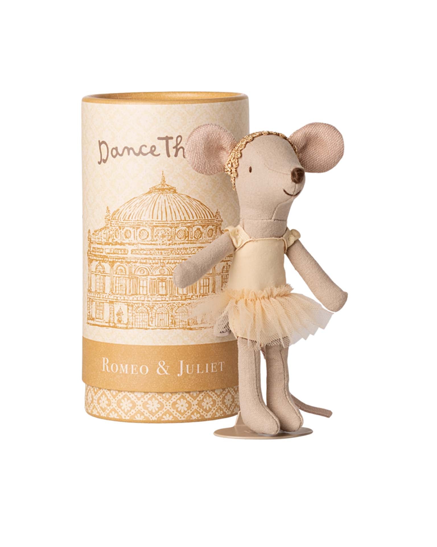 A real ballet dancer. The mouse comes in a beautiful tube with a stand inside you can use if you want to display the dancer at home.