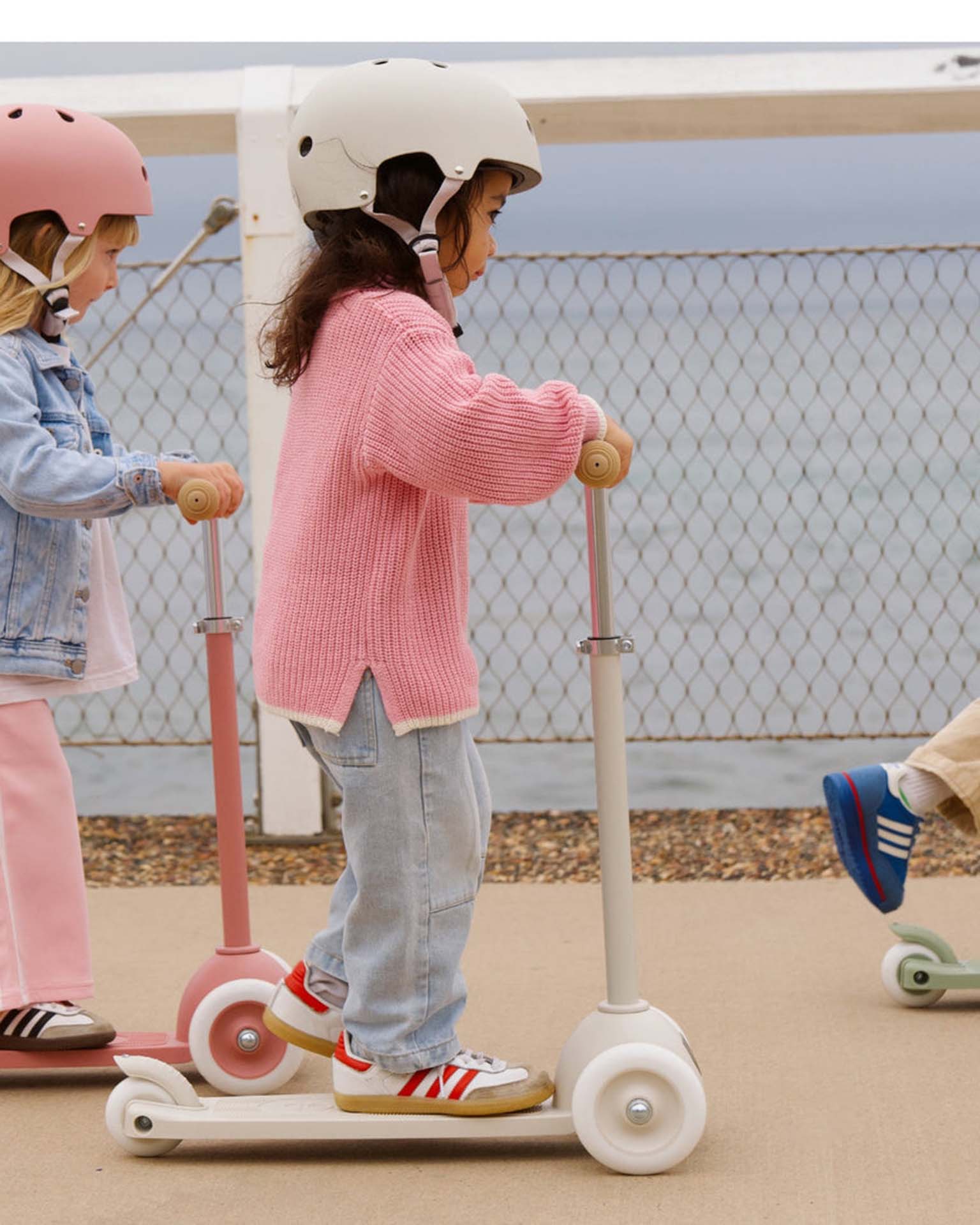 The design combines details with great functionality. This retro scooter is equipped with a T-handlebar that can be gradually adapted to three different heights as your kid grows. The rubber grips provide a good hold and the scooter deck with anti-slip tape ensures a stable and easy foothold. Going out for a scooter ride has numerous benefits for your child’s development as it improves the coordination, balance and fine motor skills, increasing confidence and making them unstoppable little kickers!