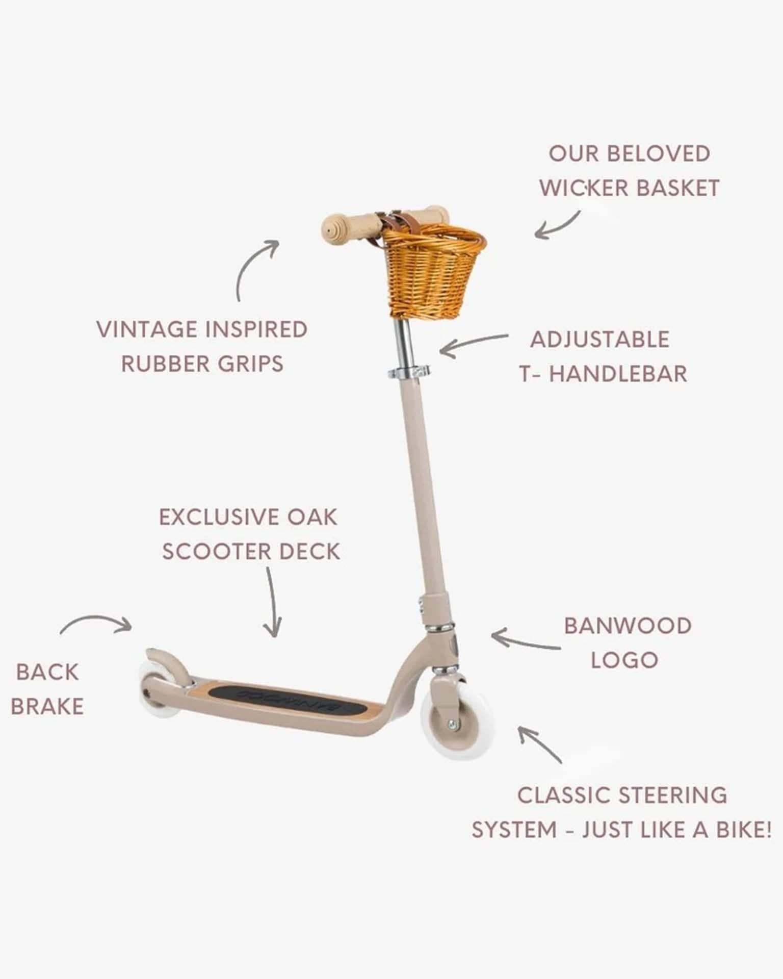 - Banwood’s beloved wicker basket included
