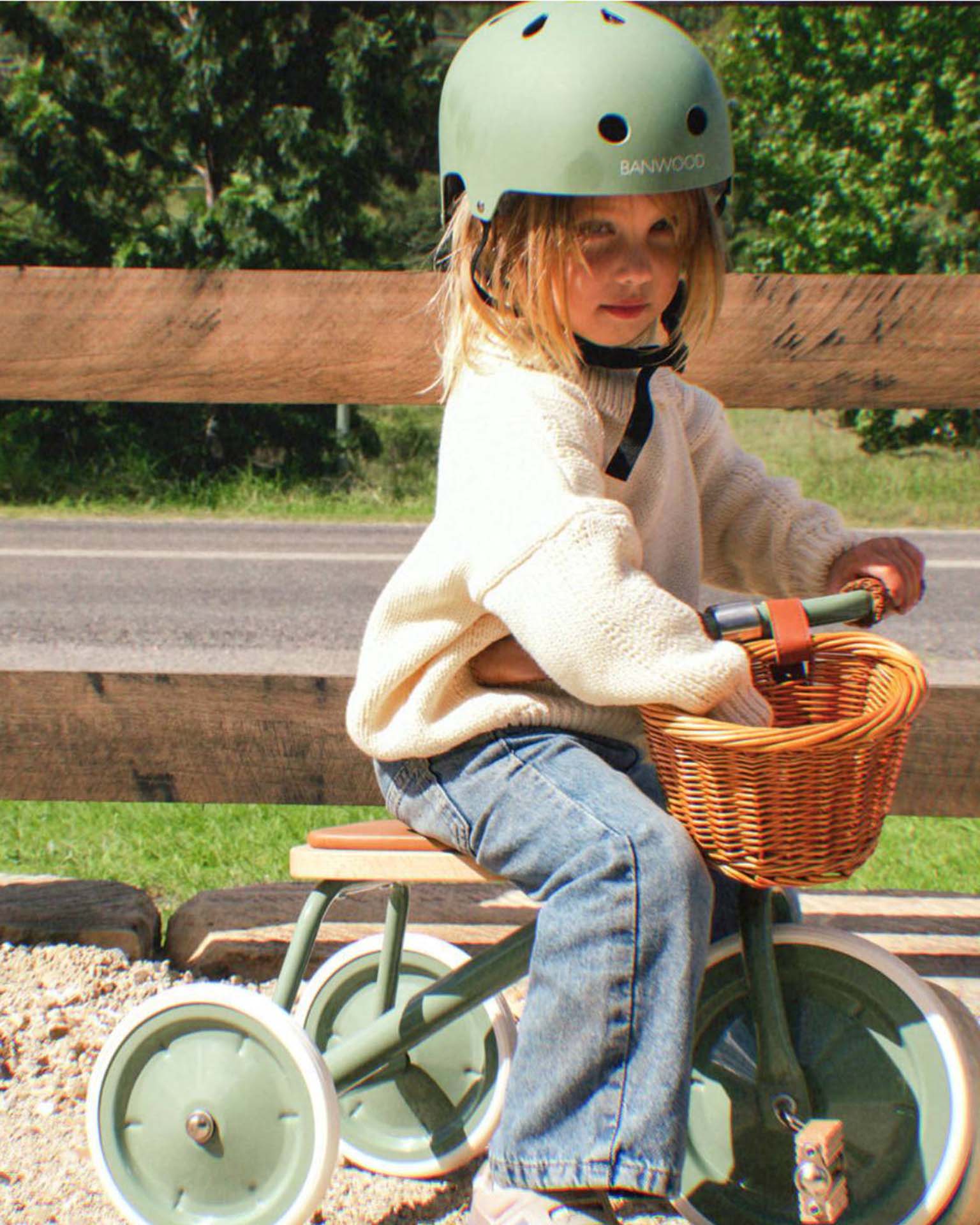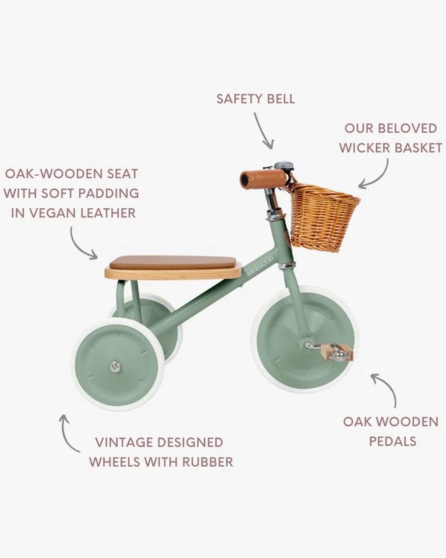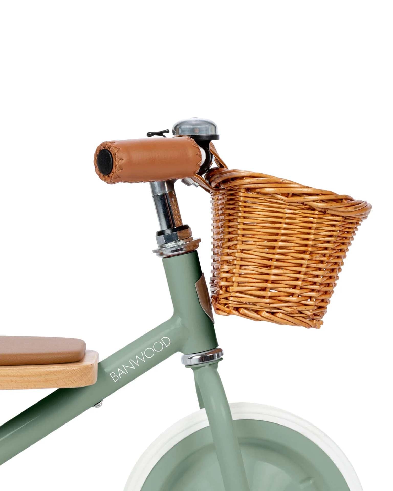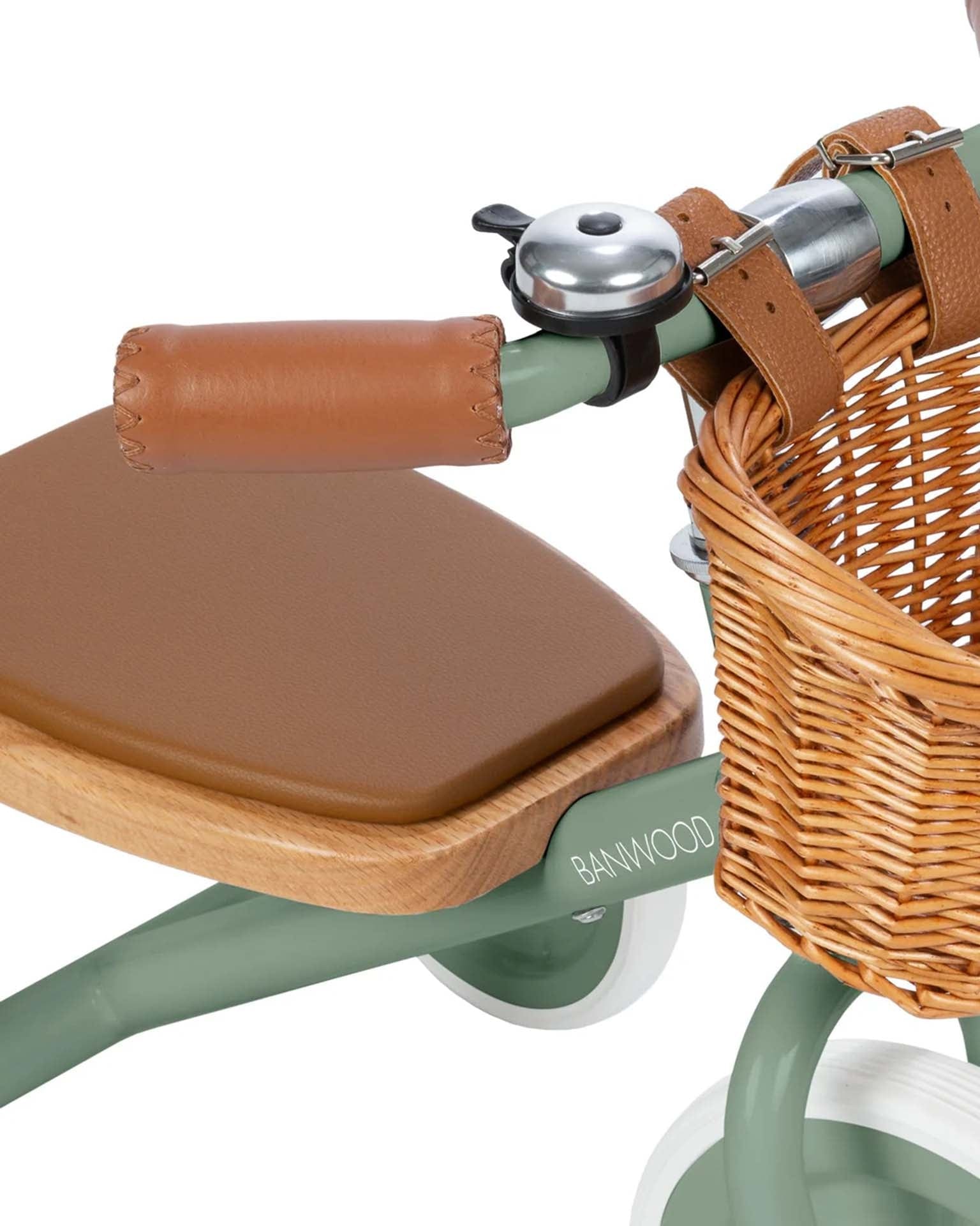 The Banwood Trike is a classically designed toddler tricycle and is a source for comfort and joy for all children. Featuring a soft padded oak seat, vegan leather details, wooden oak pedals, a cute wicker basket in front for packing the essentials and six different colors to choose from - one to suit every child’s personal style. This vintage trike is suitable for kids starting from 3 years old.