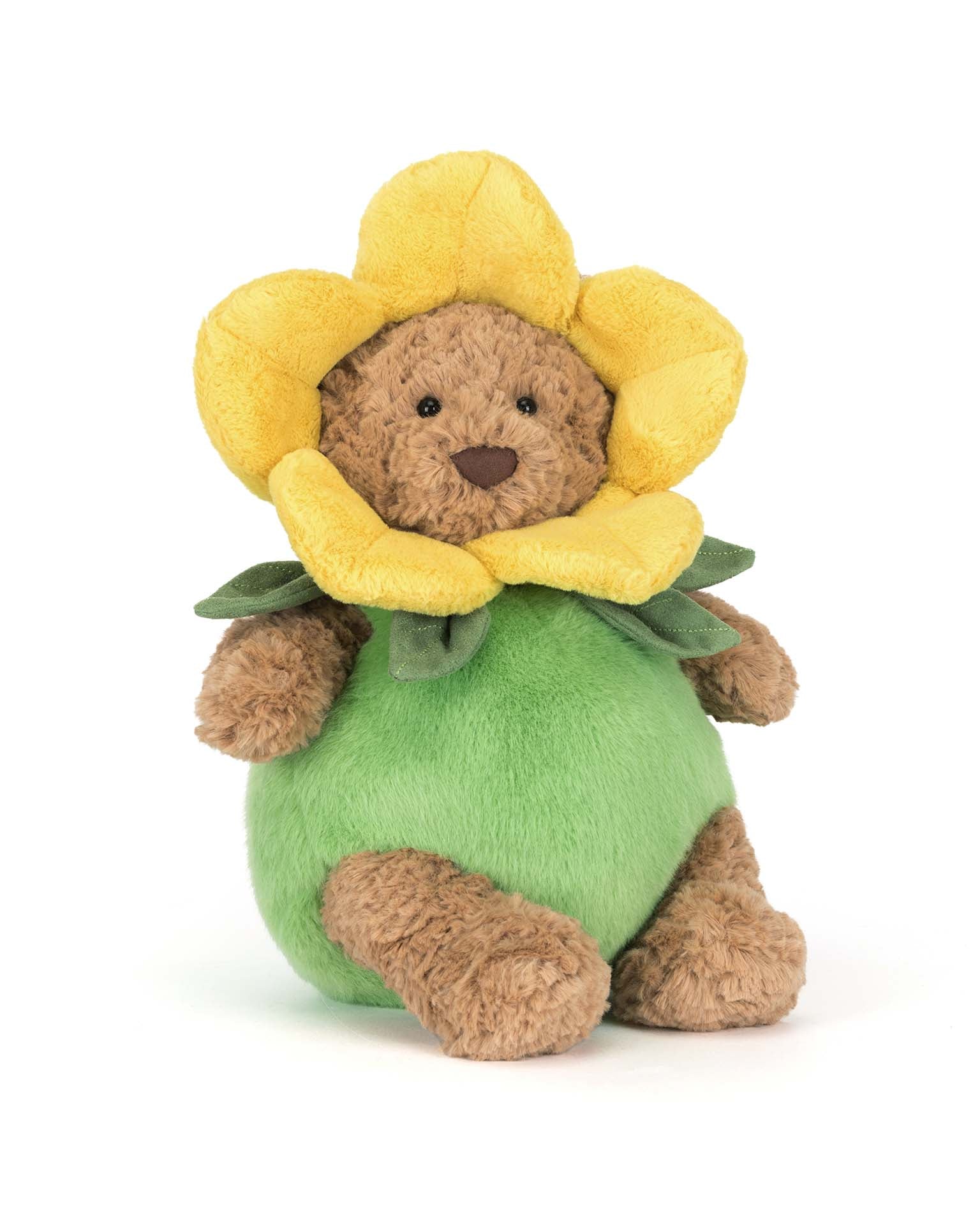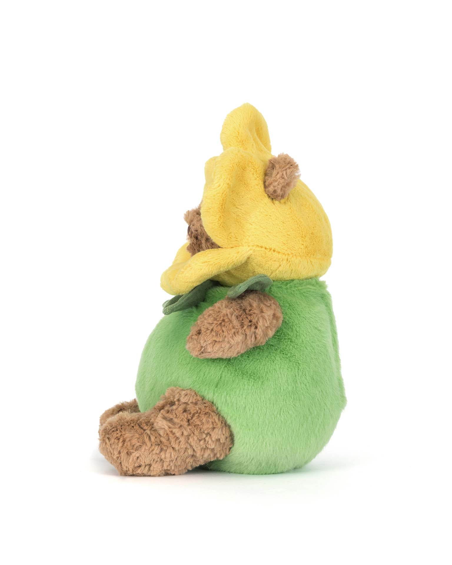 Bartholomew Bear Daffodil Outfit is blooming. Dressed head to toe in his sunny daffodil costume, he’s channeling pure flower power and sharing it generously with everyone he meets – by putting on a spring performance for his friends, naturally!