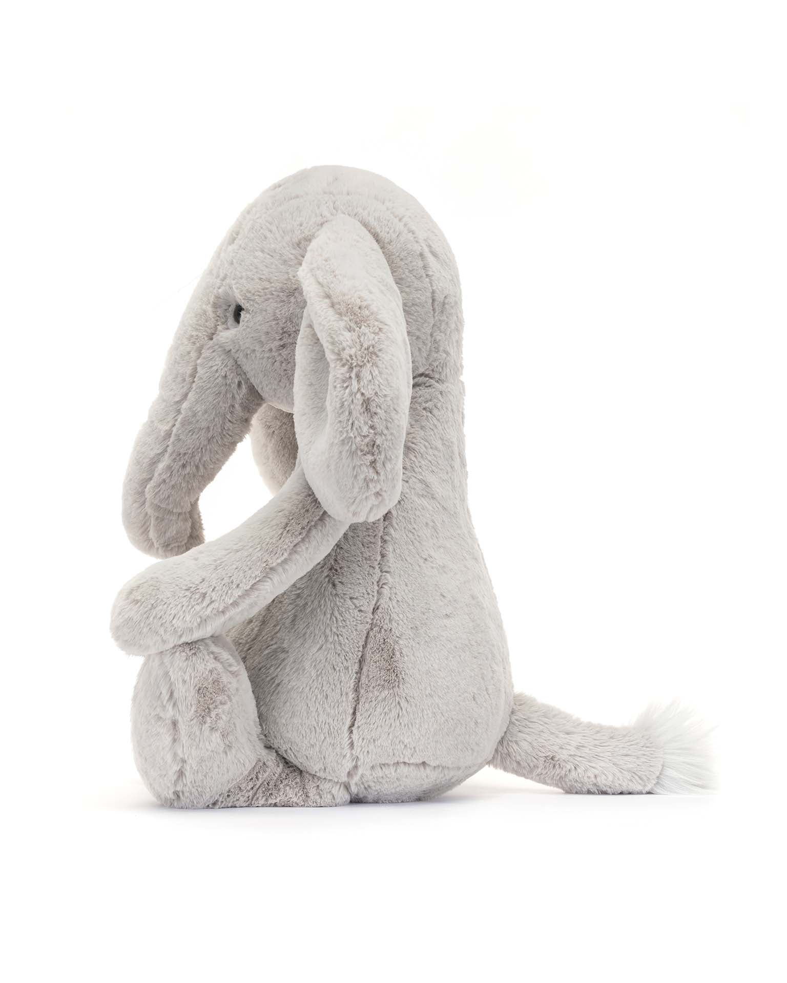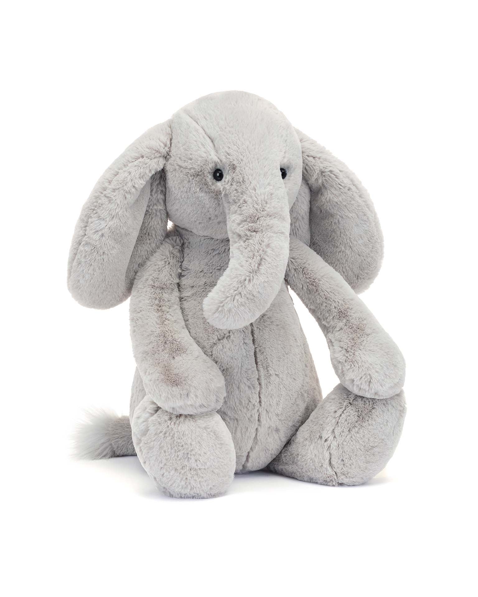 Bashful Luxe Elephant Thuddeus has a nose for adventure. In luxuriously soft grey fur with a fluffy tail tip, Thuddeus uses that long, curved trunk to sniff out new friends, and those big ears to listen to exciting stories. What adventures will you seek out together?