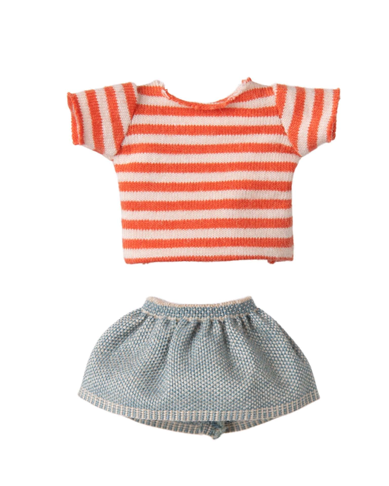This mouse is the sister of LouiMax and she wears a red striped t-shirt and a denim skirt. She has magnets in her hands and is sold in a very nice decoration box.