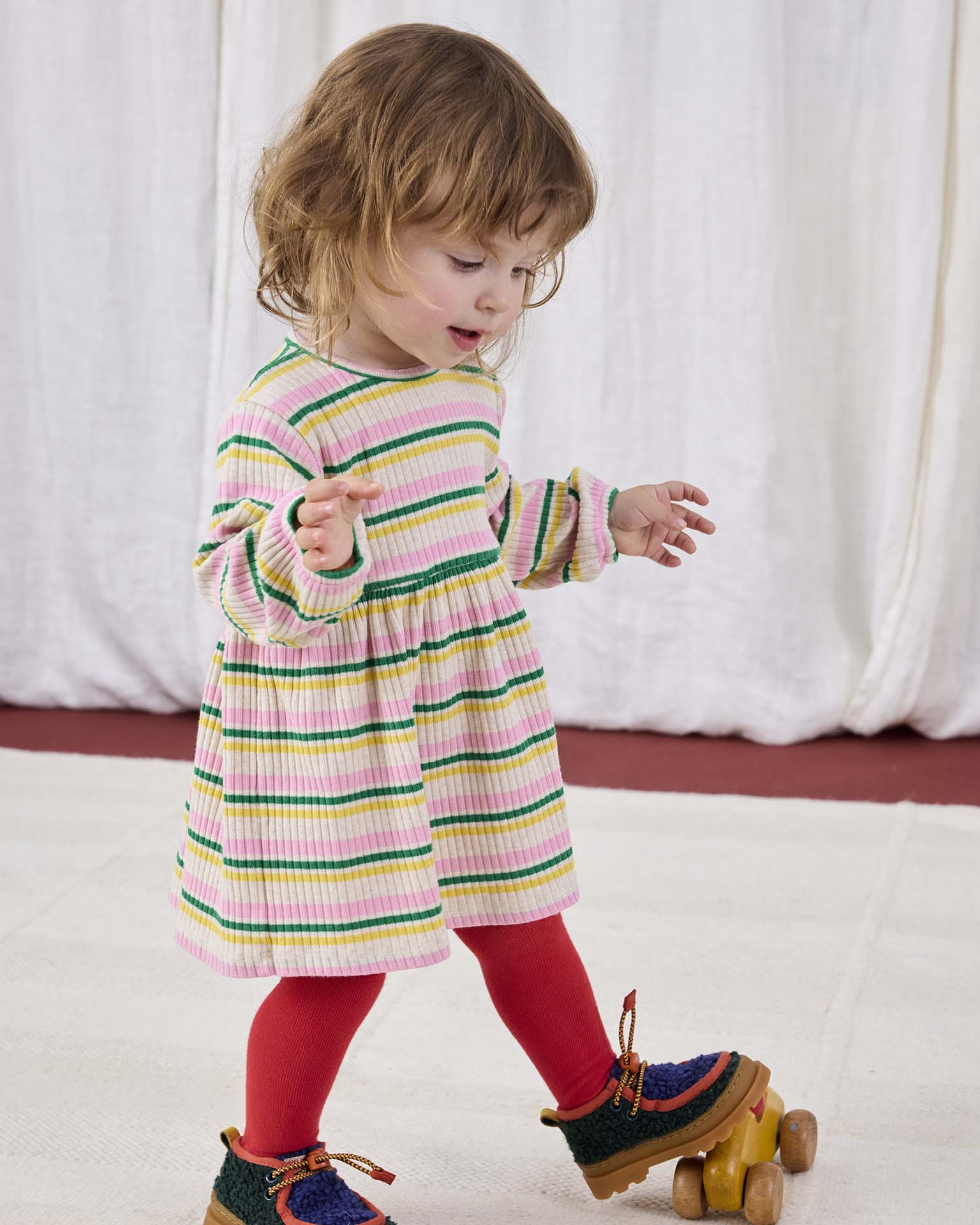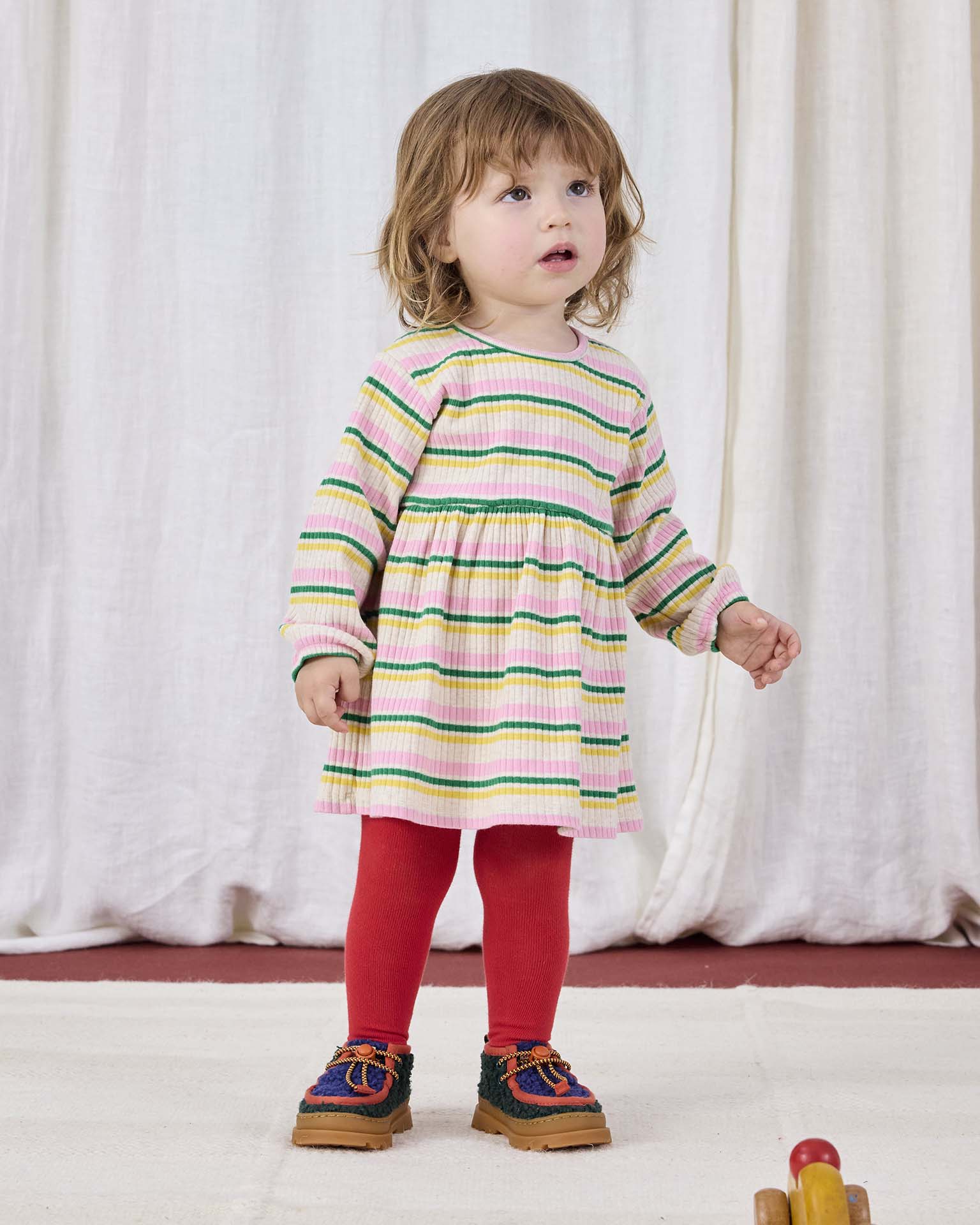 This long sleeved dress from Bobo Choses is perfect for fall! Pair it with some bright colored tights and your little one is ready to go.