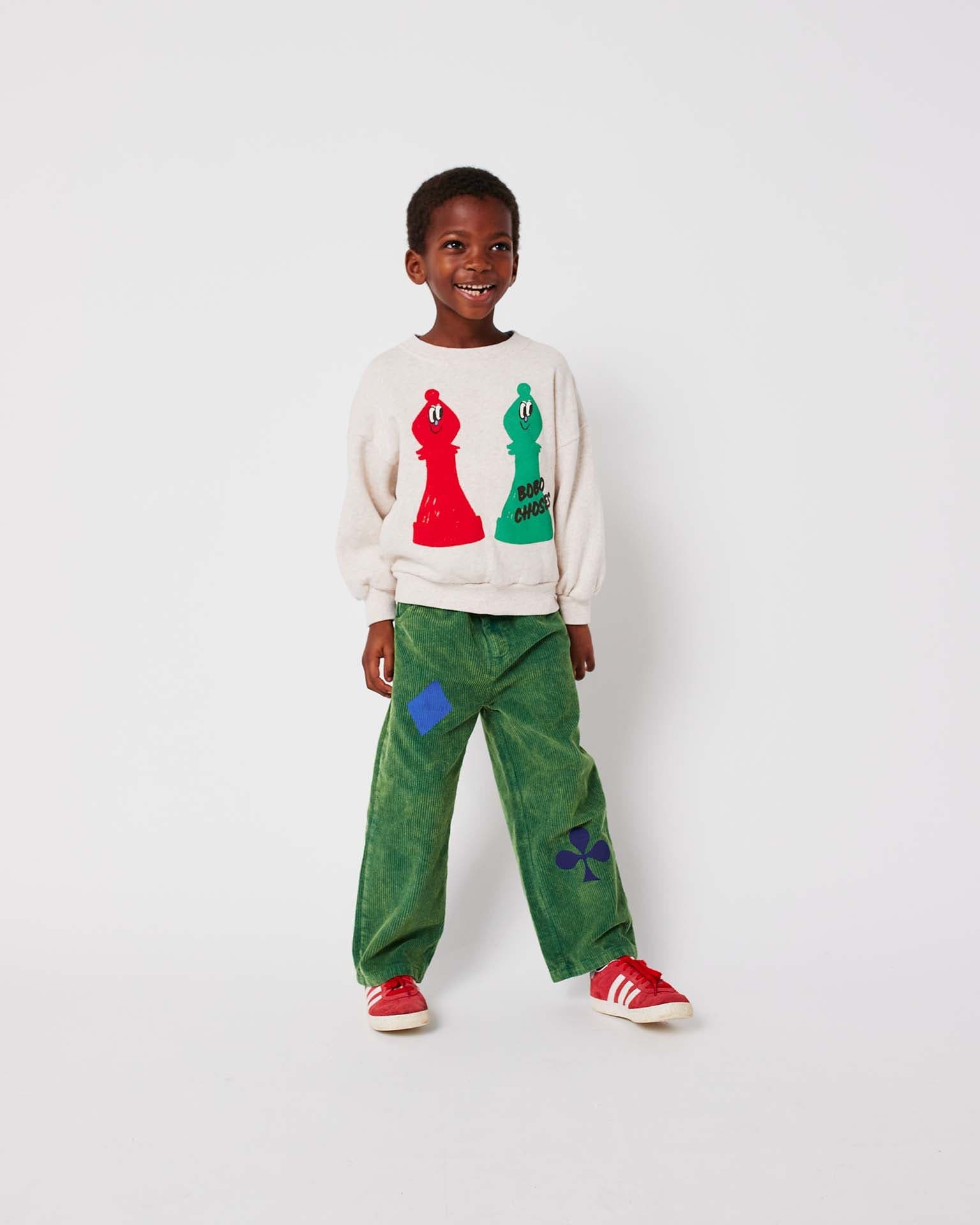 These unique joker corduroy pants from Bobo Choses feature an adjustable waistband, making them perfect for growing kids. Pair them with the matching joker corduroy shirt!