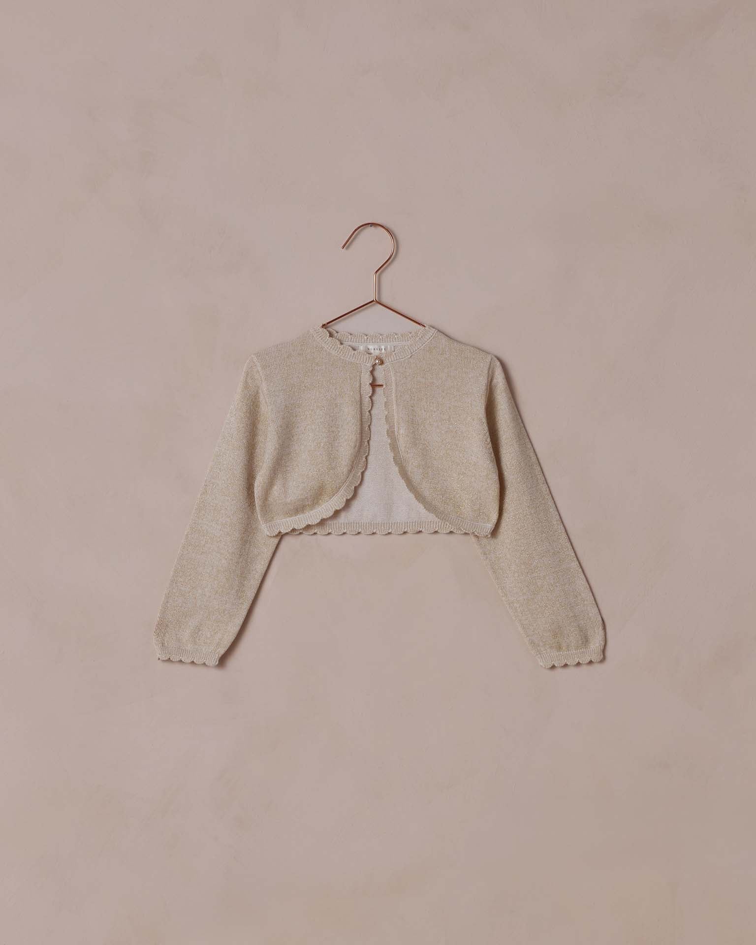 Our metallic knit Bolero Sweater features an open-front design with a single button closure, making it the perfect finishing touch to any outfit. Layer over a tulle style for your little ballerina or pair with one of our dresses for added warmth and charm.