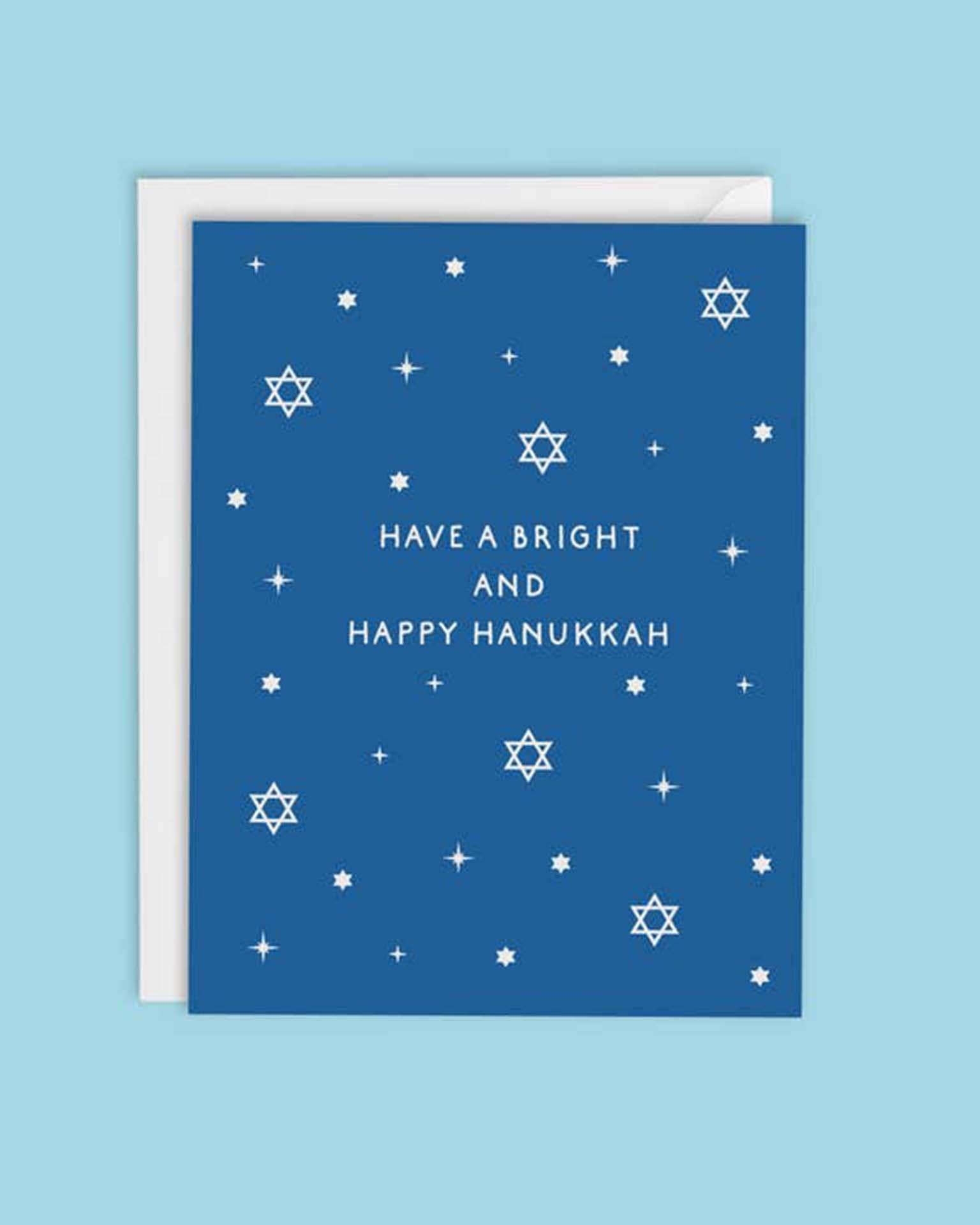 A modern Hanukkah card with stars to make your Hanukkah Bright and Happy! Designed and printed in USA on matte felt stock. Blank inside for your lovely personal message.