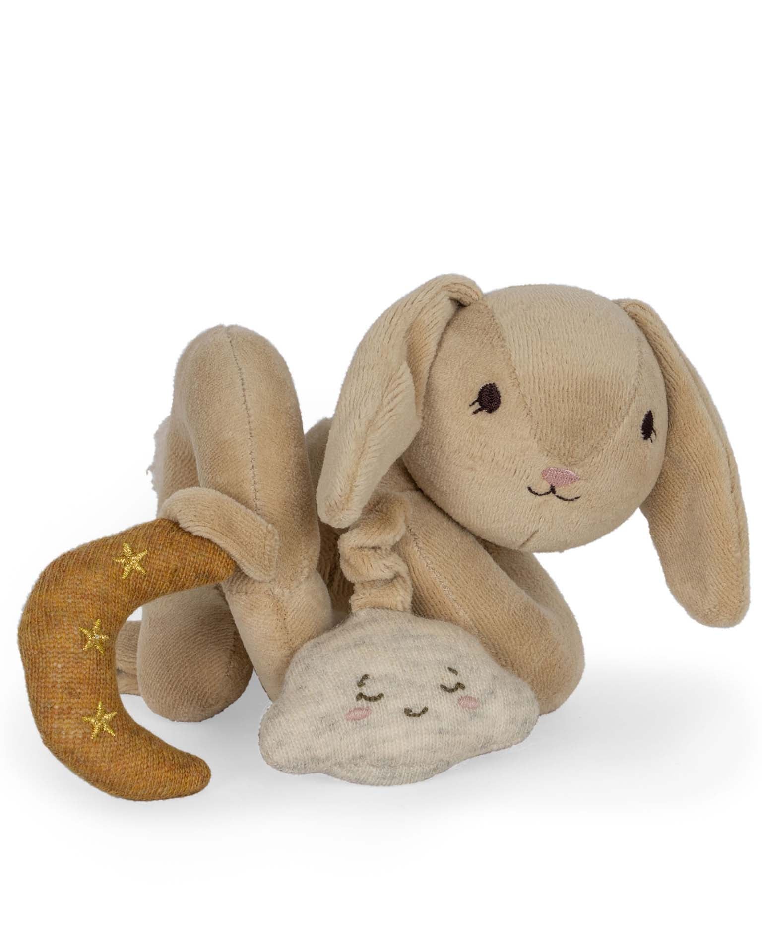 This bunny activity spiral is the perfect toy for any baby. Featuring a soft cotton bunny, a cloud with mirror, and a soft moon.