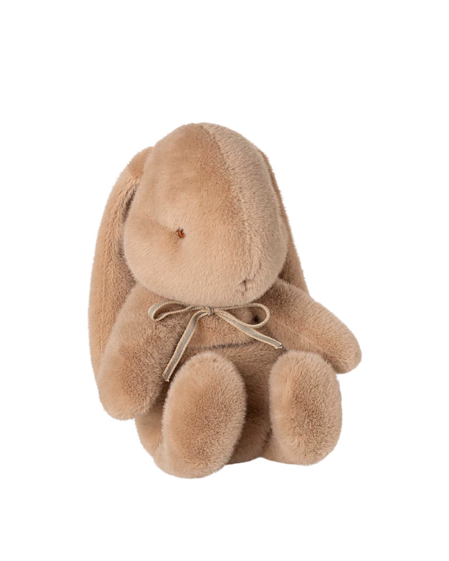 This bunny comes in very soft and unique plush fabric. It has a beautiful bow around the neck. It has a very sweet look and will soon be someone's very best friend.
