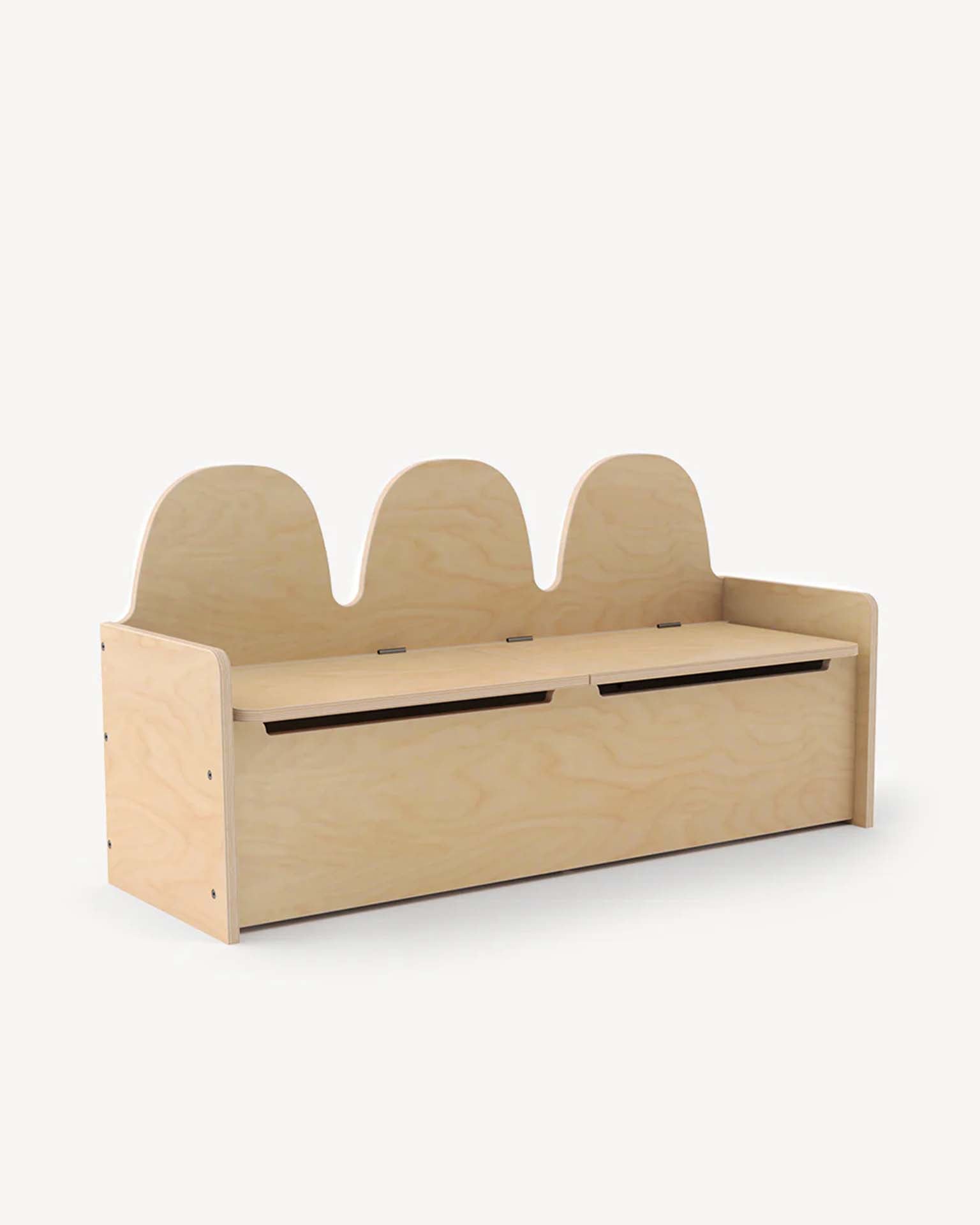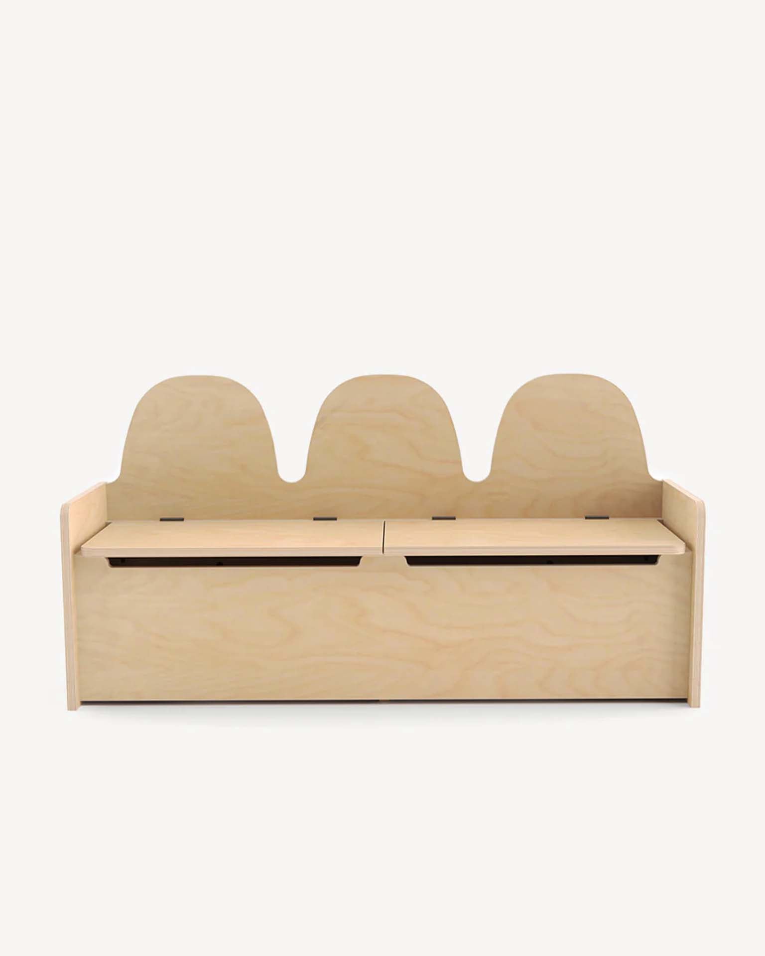 Storage meets seating in our clever Camel Storage Bench. Designed with little hands in mind, its soft-close lids stop just before closing, requiring a gentle push to shut fully for ultimate safety. Inside, two roomy compartments provide ample space for storing toys, shoes, or other essentials.