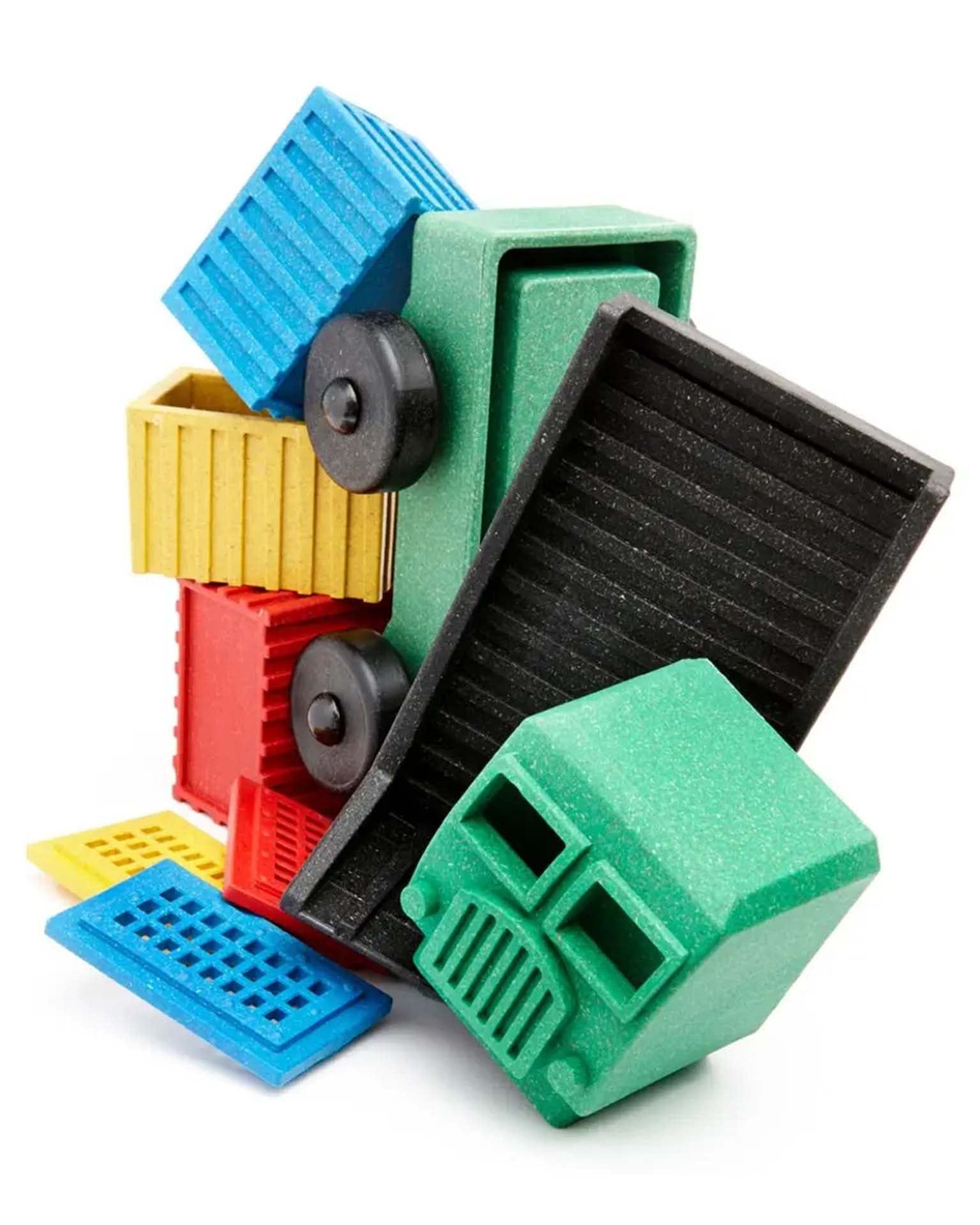 This cargo truck is a nine part puzzle (with all those boxes) that rewards your child with a working cargo truck. The boxes have lids that come off so you can stash treasure inside. They also stack on top of each other so they can be stacked up and knocked down. This stem educational toy truck encourages early childhood development of problem solving, creative play, and fine-motor skills in kids aged 3+.