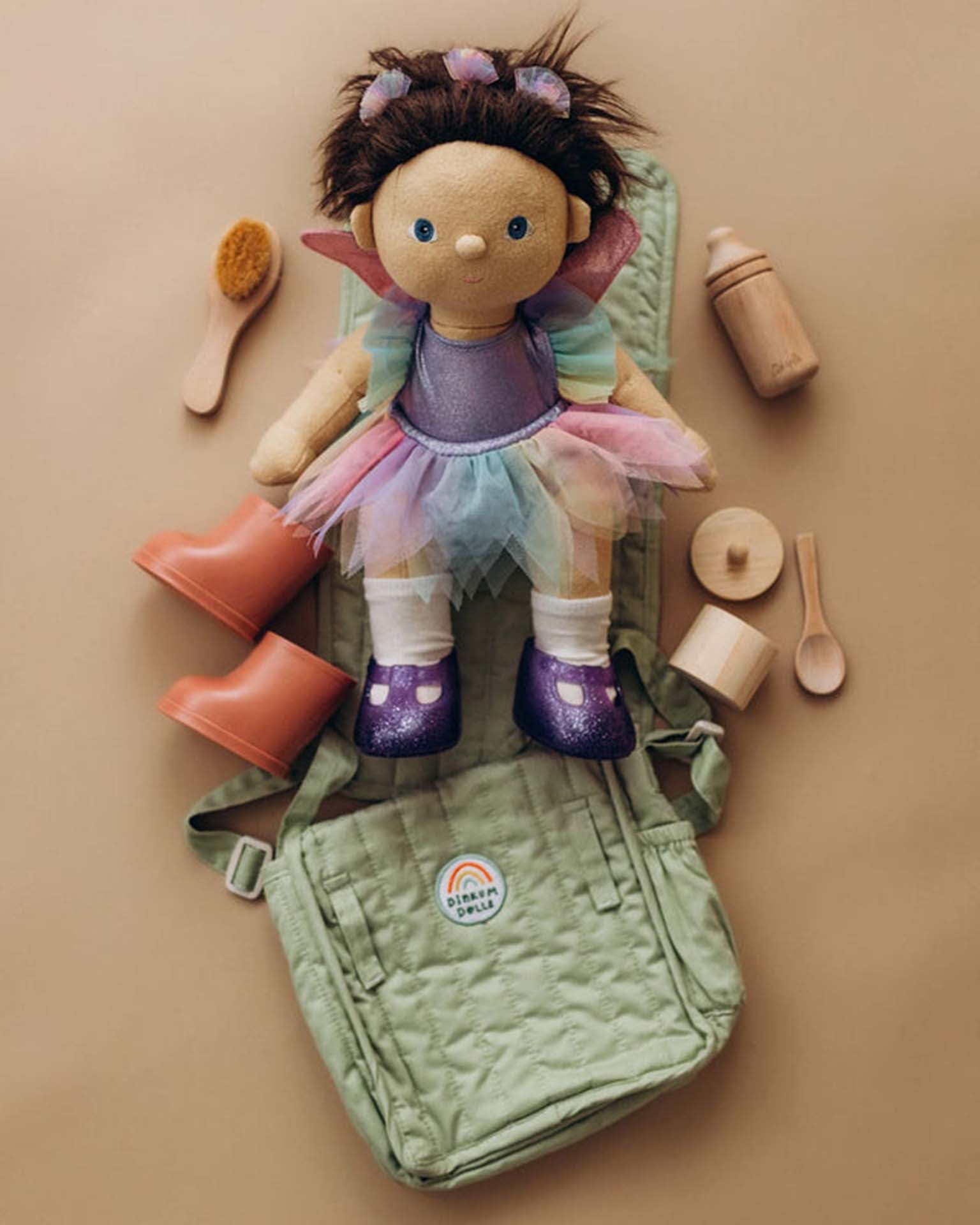 Not only does it serve as a versatile vessel for doll accessories or outfits, but it can also be worn as a backpack, shoulder bag, or crossbody bag – and can even be effortlessly strapped to any stroller or pram. The Carrie Changing Bag is more than just a plaything and more than just a doll nappy bag – it's a must-have doll accessory to spark imagination and on-the-go fun.