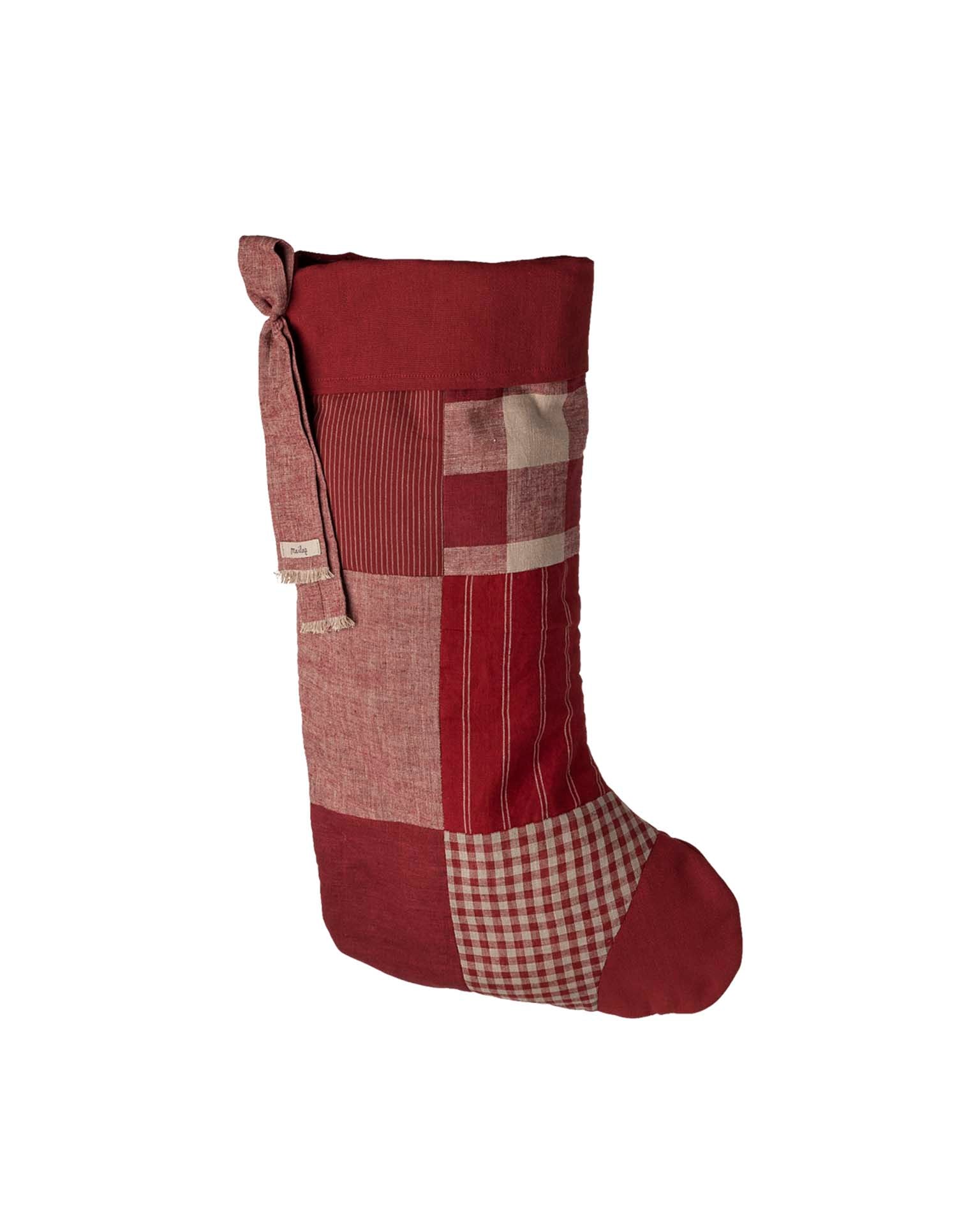 Find the perfect spot in your home to hang this beautiful Christmas stocking made in a beautiful mosaic of different fabrics in the colors of Christmas. Let Santa visit during December with small surprises to make a magical Christmas atmosphere.