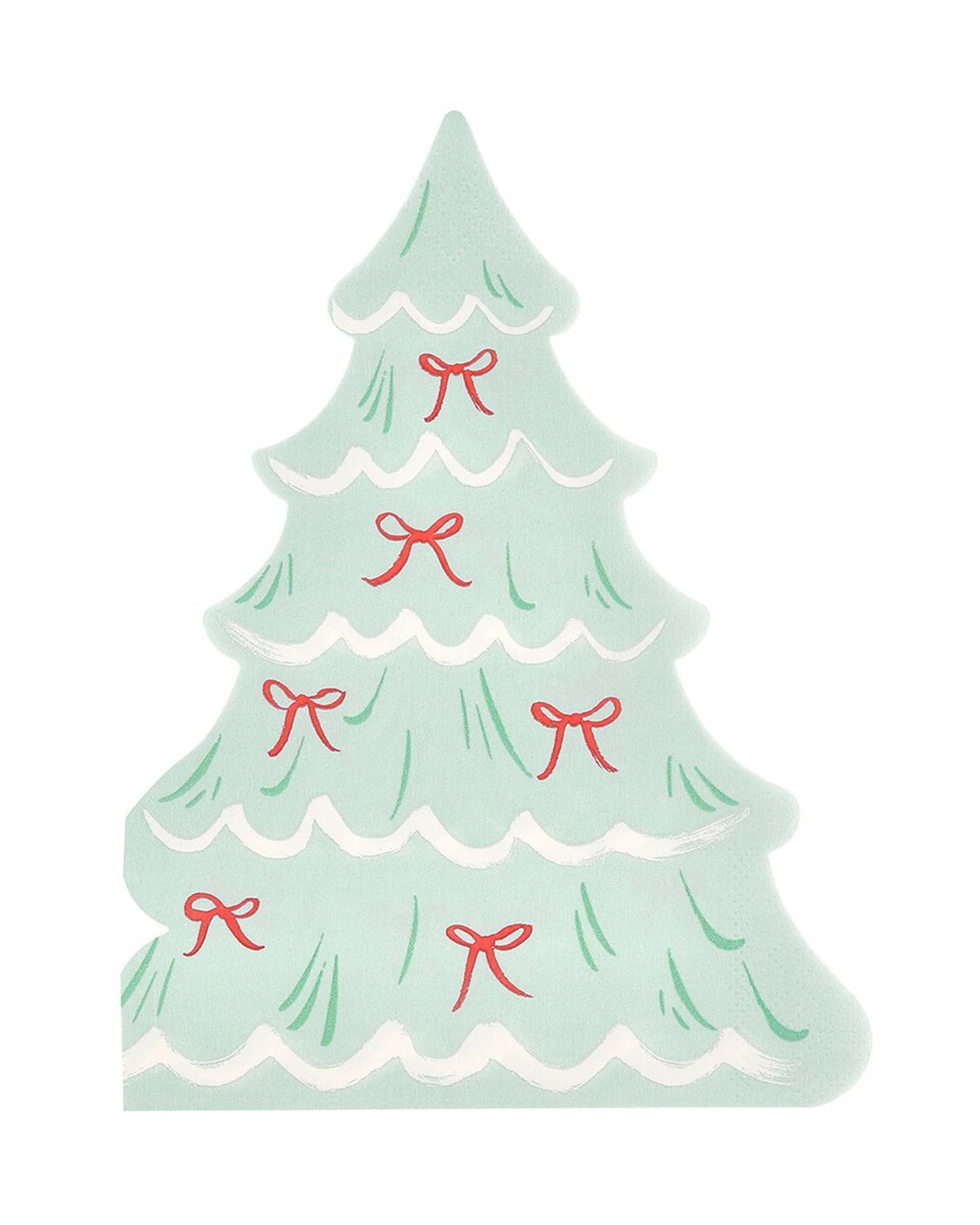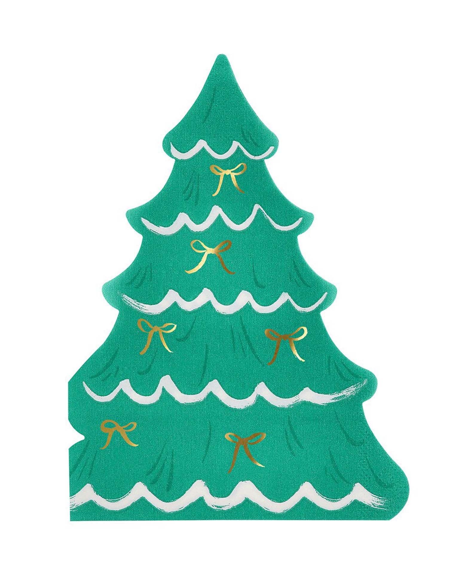 Fa, la, la! These Christmas tree paper napkins will definitely make you feel jolly. This traditional design, with a contemporary twist of chic bows and shiny gold foil shimmers, will add color and style to your party table. Perfect for family gatherings, Christmas dinner or cocktail parties. Pair them with complementary tableware for an effortlessly festive tablescape.