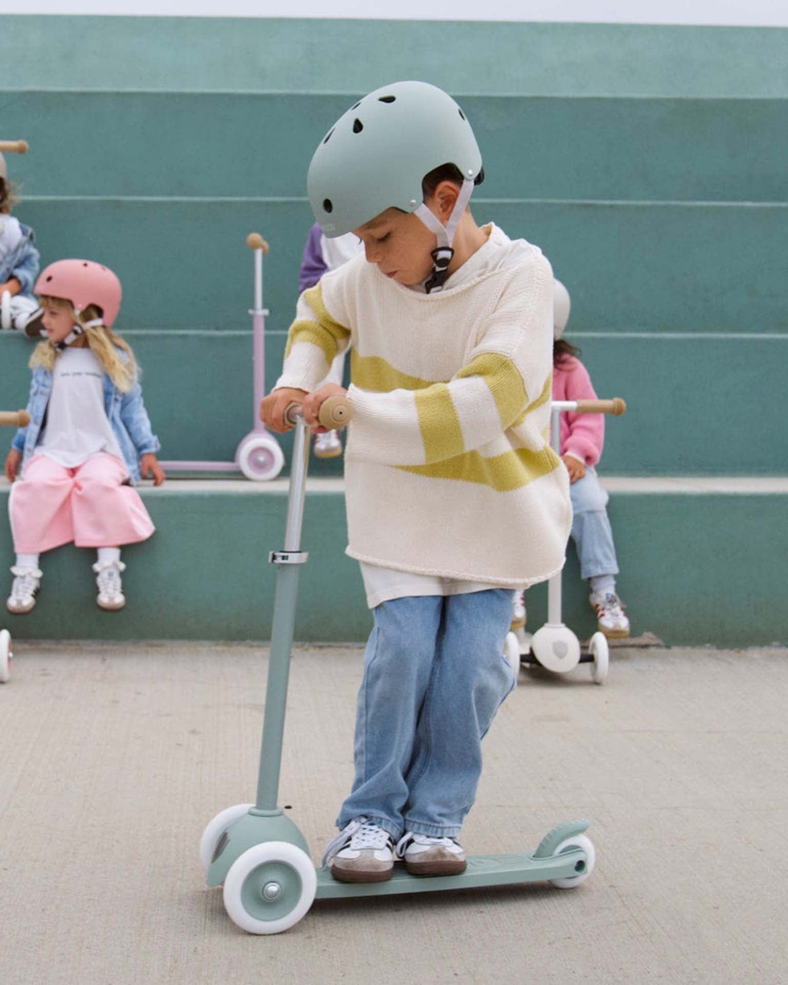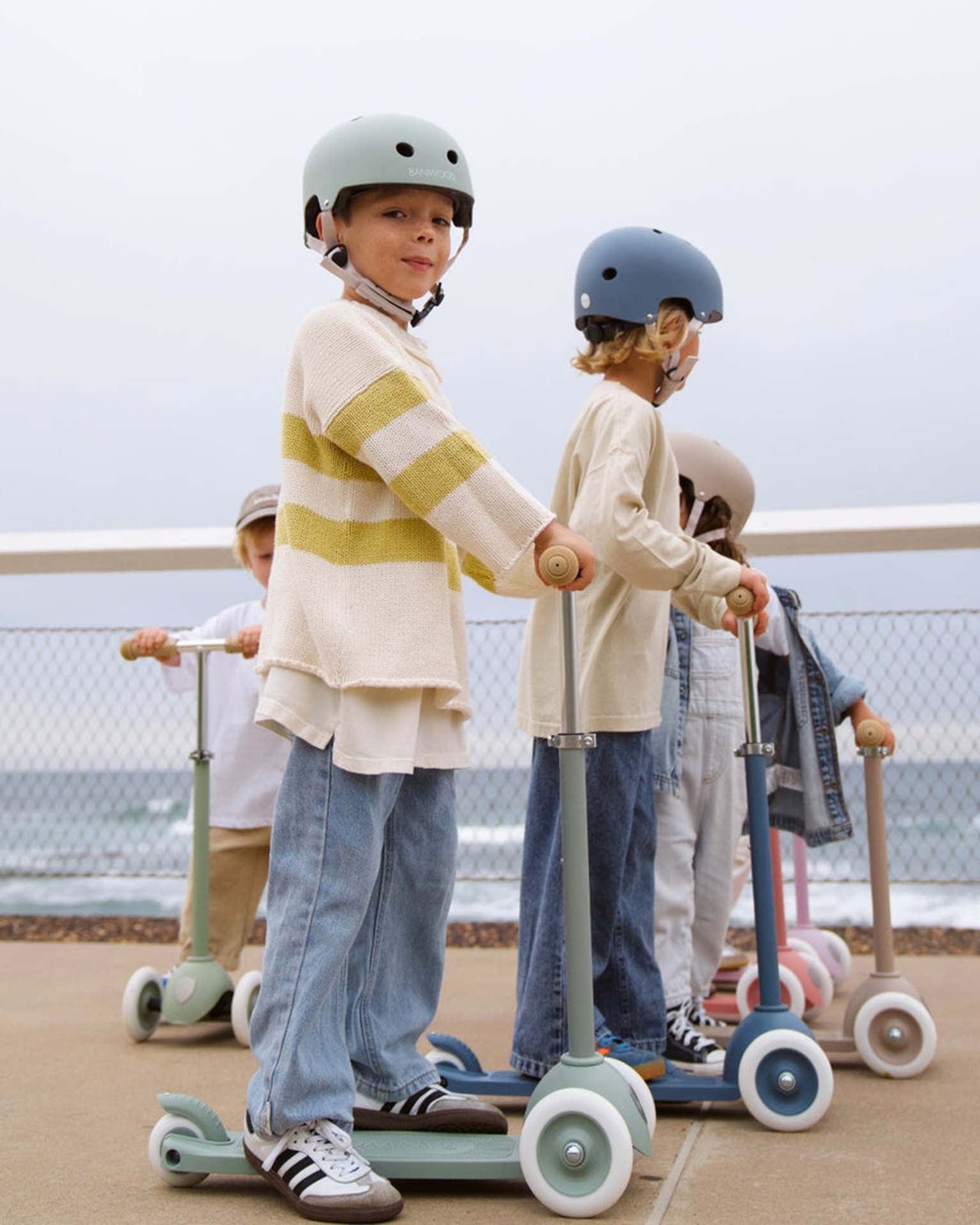 The Banwood Eco Helmet is designed to keep our smallest ones safe when cycling. This helmet has a durable ABS outer shell for maximum protection and is lined with soft inner foam. Banwood's cycle helmets are available in one size and have a dial-fit adjustment system in the back as well as an adjustable chin strap, which provides an exact fitting of the helmet for maximum comfort and a secure fit for your little one.