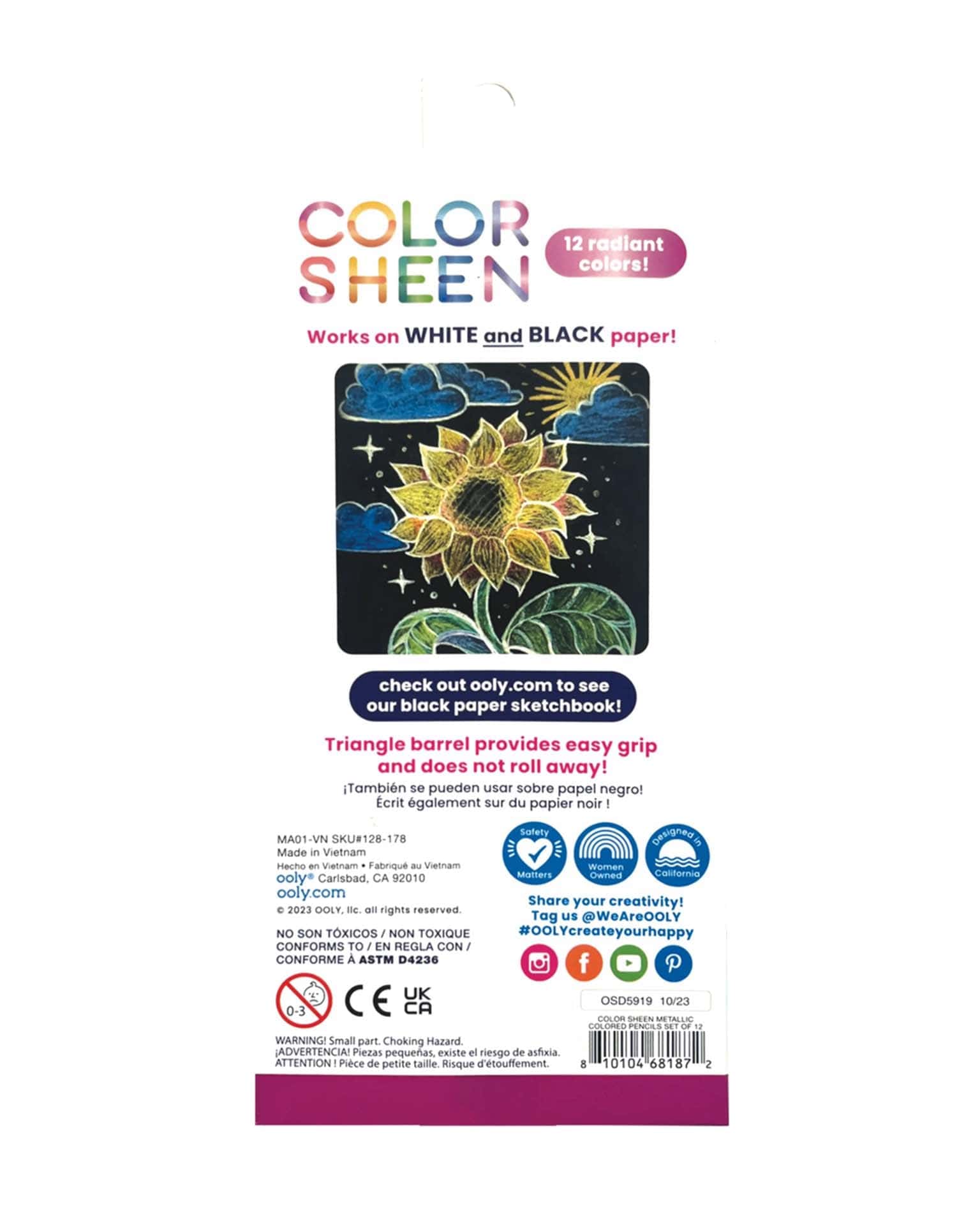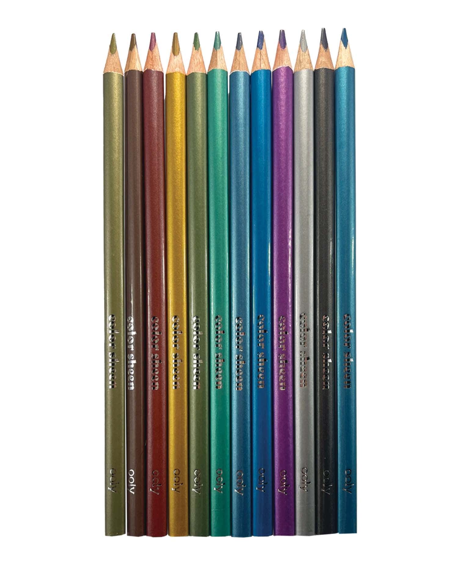 Unleash the power of lustrous color with the Color Sheen Metallic Colored Pencils. This set of 12 shimmering pencils offers a unique palette designed to make your artwork shine, especially on black paper. With a smooth coloring experience and an easy-grip triangular barrel, artists of all ages can effortlessly glide over paper, watching their creations reflect light. Whether you're sketching on white or experimenting with the depth of black paper art, these pre-sharpened pencils ensure every stroke is infused with brilliance!
