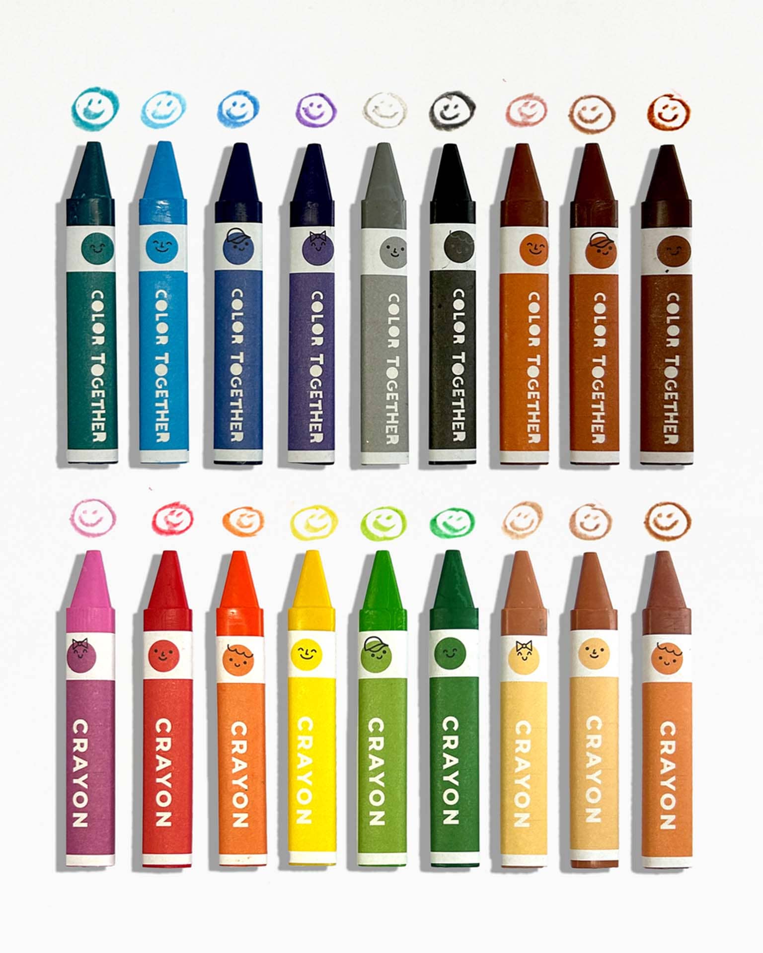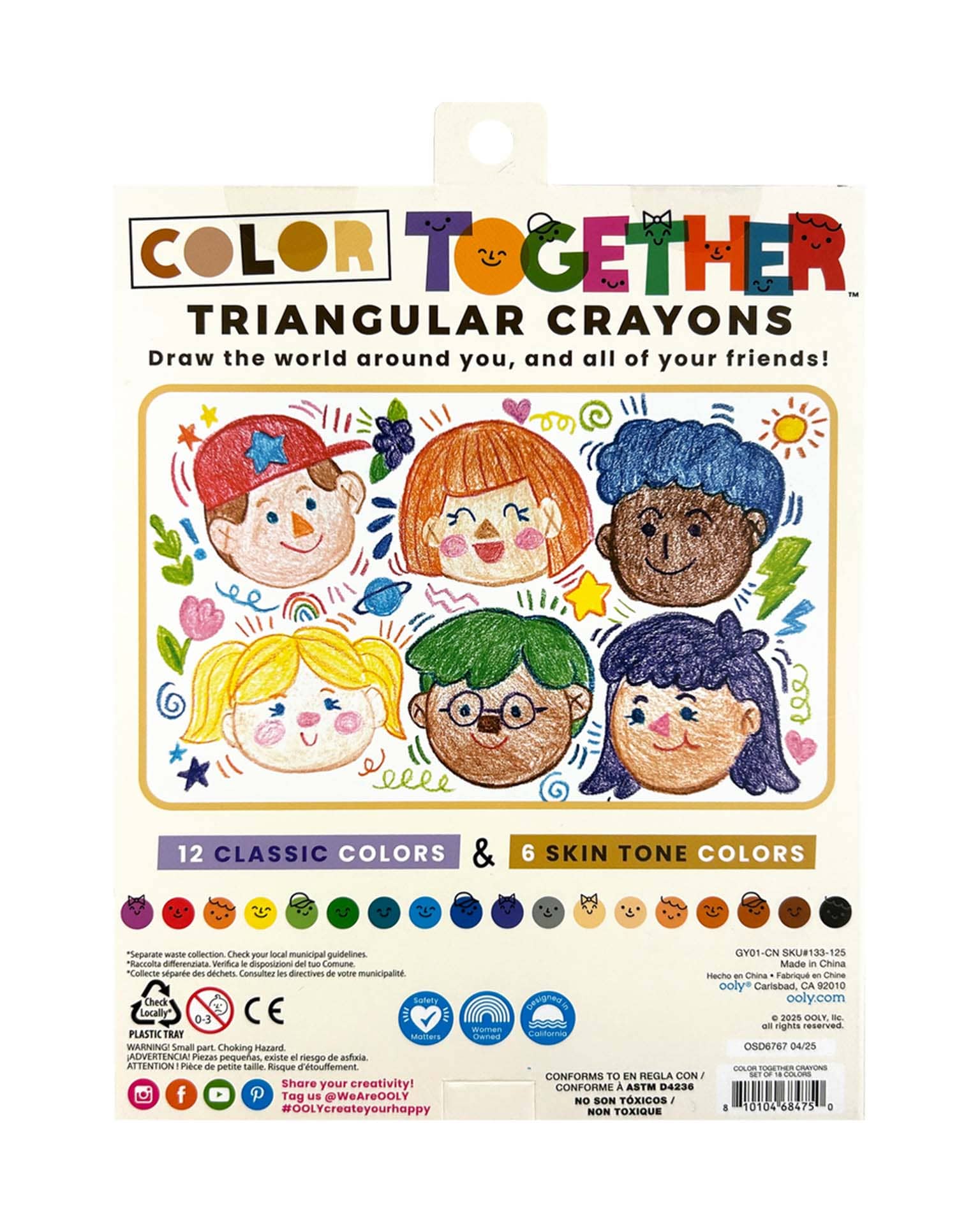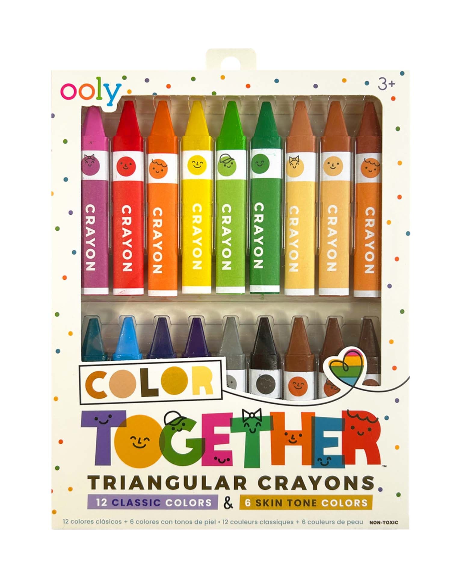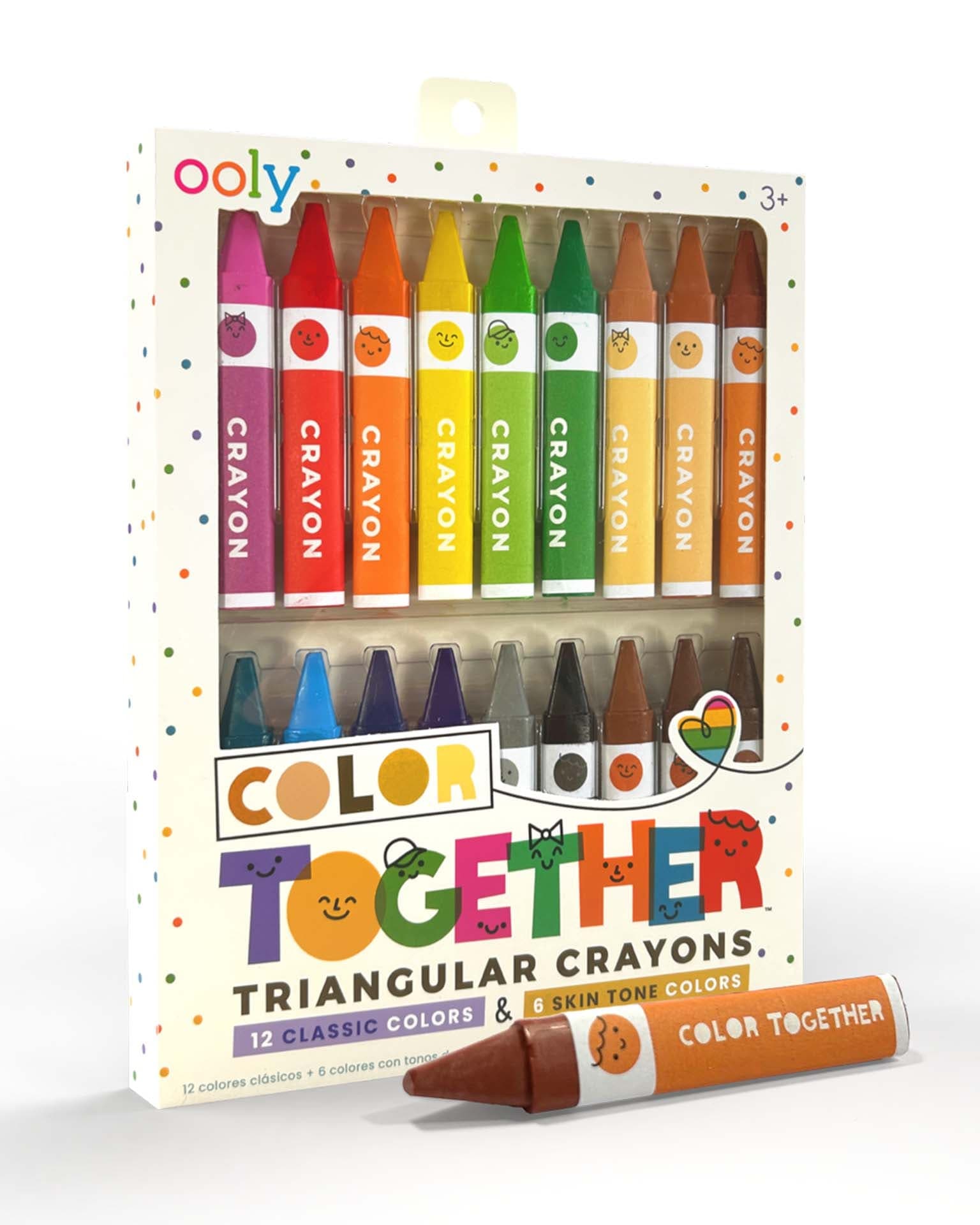 Make art time more inclusive and fun with the Color Together Triangle Crayons! This 18-pack includes 12 classic colors and 6 skin tone crayons, perfect for coloring people on any page. The unique triangle shape makes these ergonomic crayons easy to hold, especially for small hands, ensuring hours of creative enjoyment for kids. Durable and vibrant, this crayon set is ideal for all art projects, big or small. Whether your little one is drawing themselves, their friends, or their family, these kids' crayons will help bring every character to life.