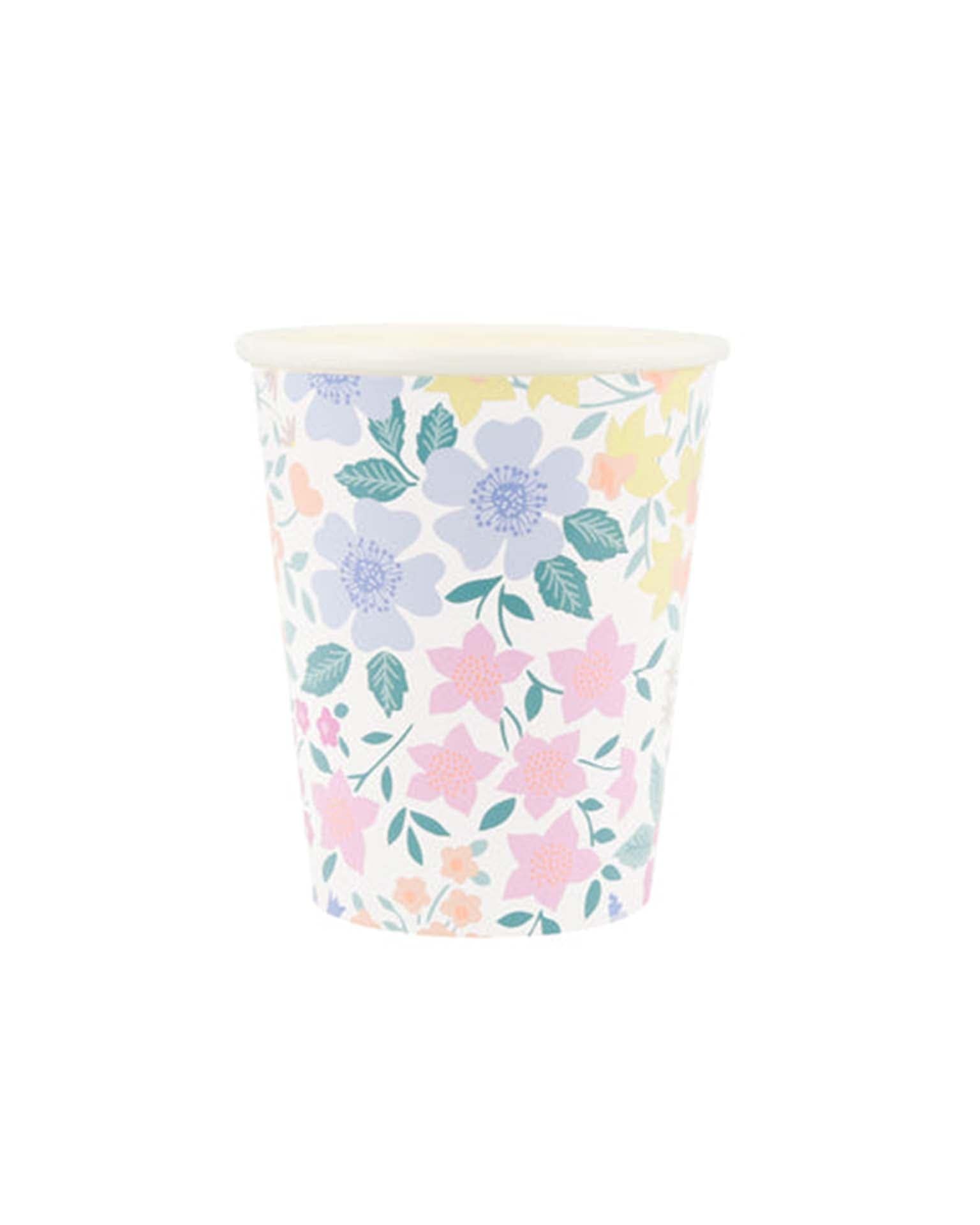Welcome to our fantastic flower range! This pretty ditsy design is reminiscent of a cottage garden, with a field of floral wonder. Take your time to spot your favorites – daffodils, bluebells, daisies and many more – and instantly feel the joys of spring. These paper cups are perfect for cool or hot drinks at a garden party, birthday party, or baby shower.