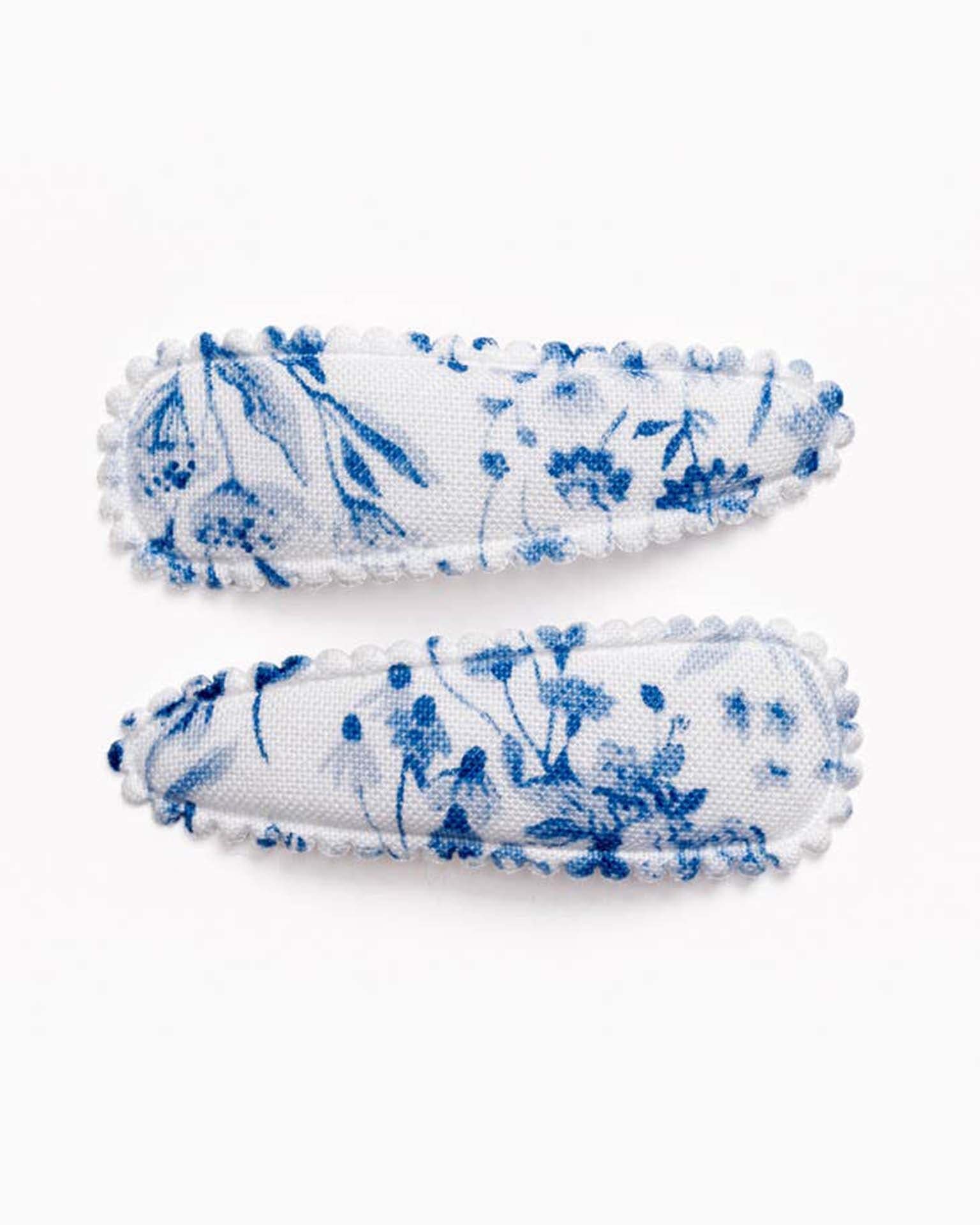 A beautiful set of fabric covered snap clips featuring a scalloped edge detail. Soft, comfortable and easy to wear. Our pretty hair clips are perfect for any age from toddler to adult. This hair clip set features beautiful high quality fabric.