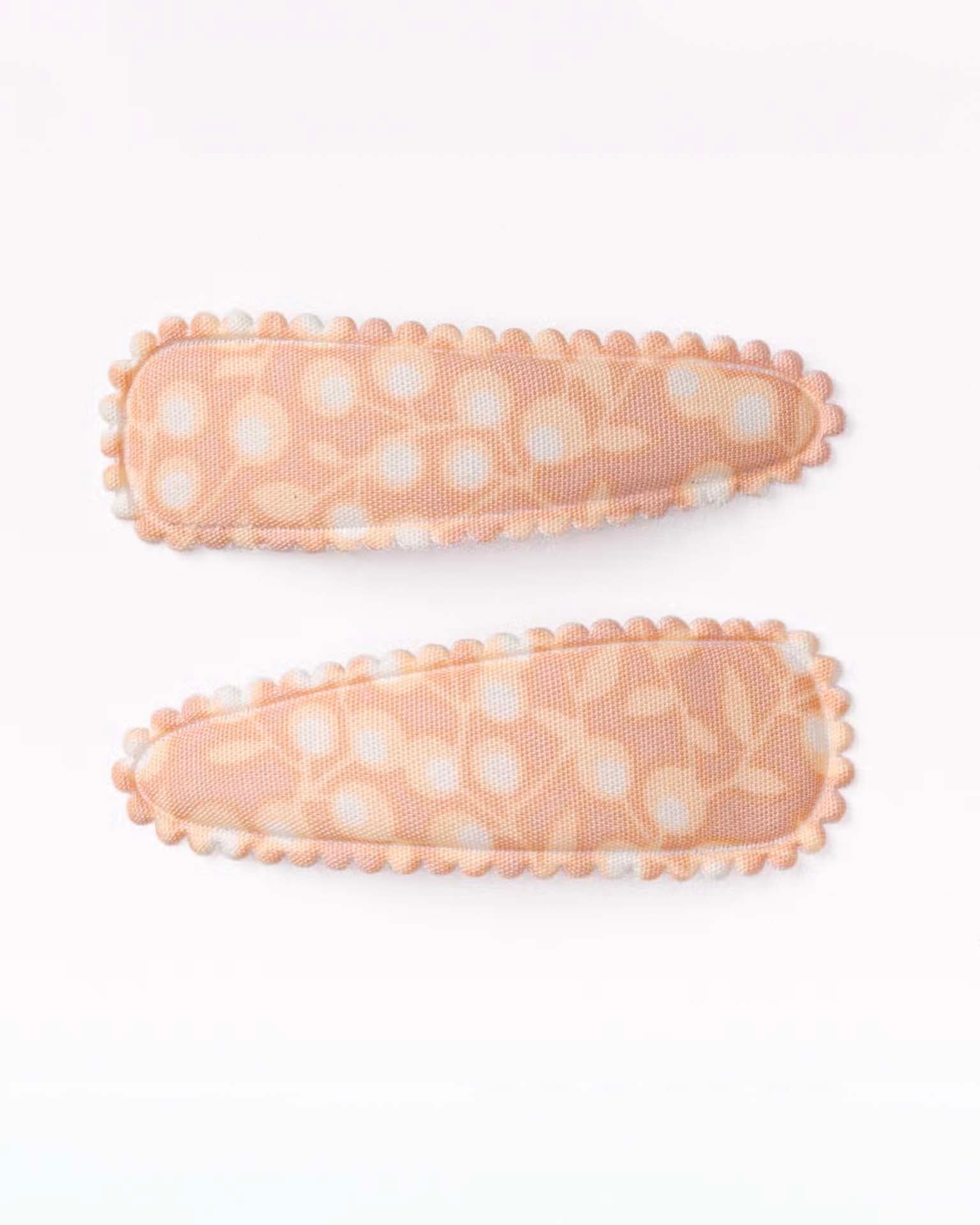 A beautiful set of fabric covered snap clips featuring a scalloped edge detail. Soft, comfortable and easy to wear. Our pretty hair clips are perfect for any age from toddler to adult. This hair clip set features beautiful high quality fabric.