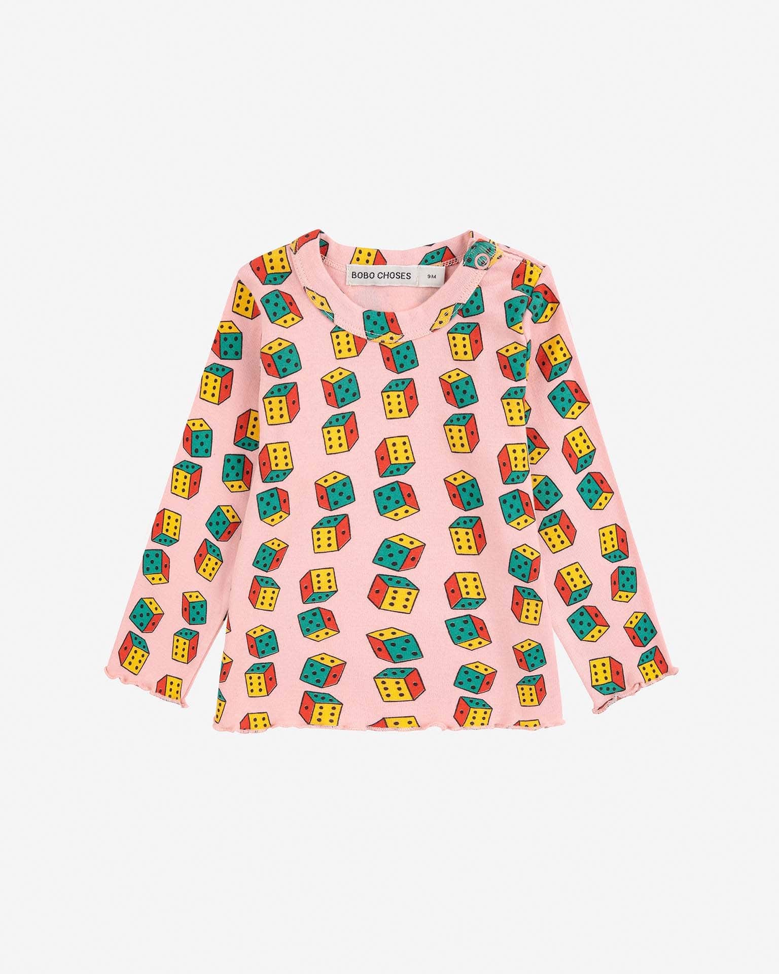 This light pink long sleeve tee from Bobo Choses features an all over dice print, making it a colorful and fun addition to baby's wardrobe. Pair it with the matching leggings!