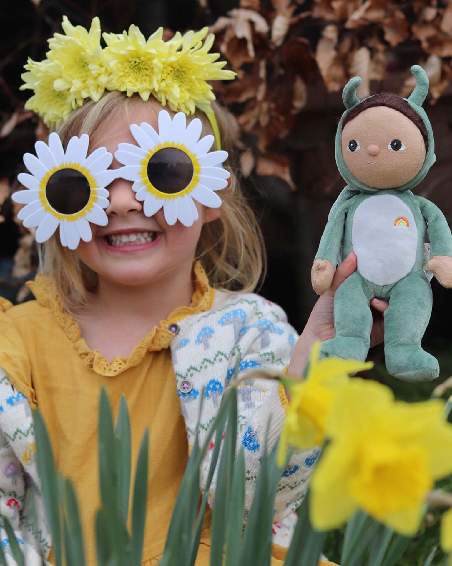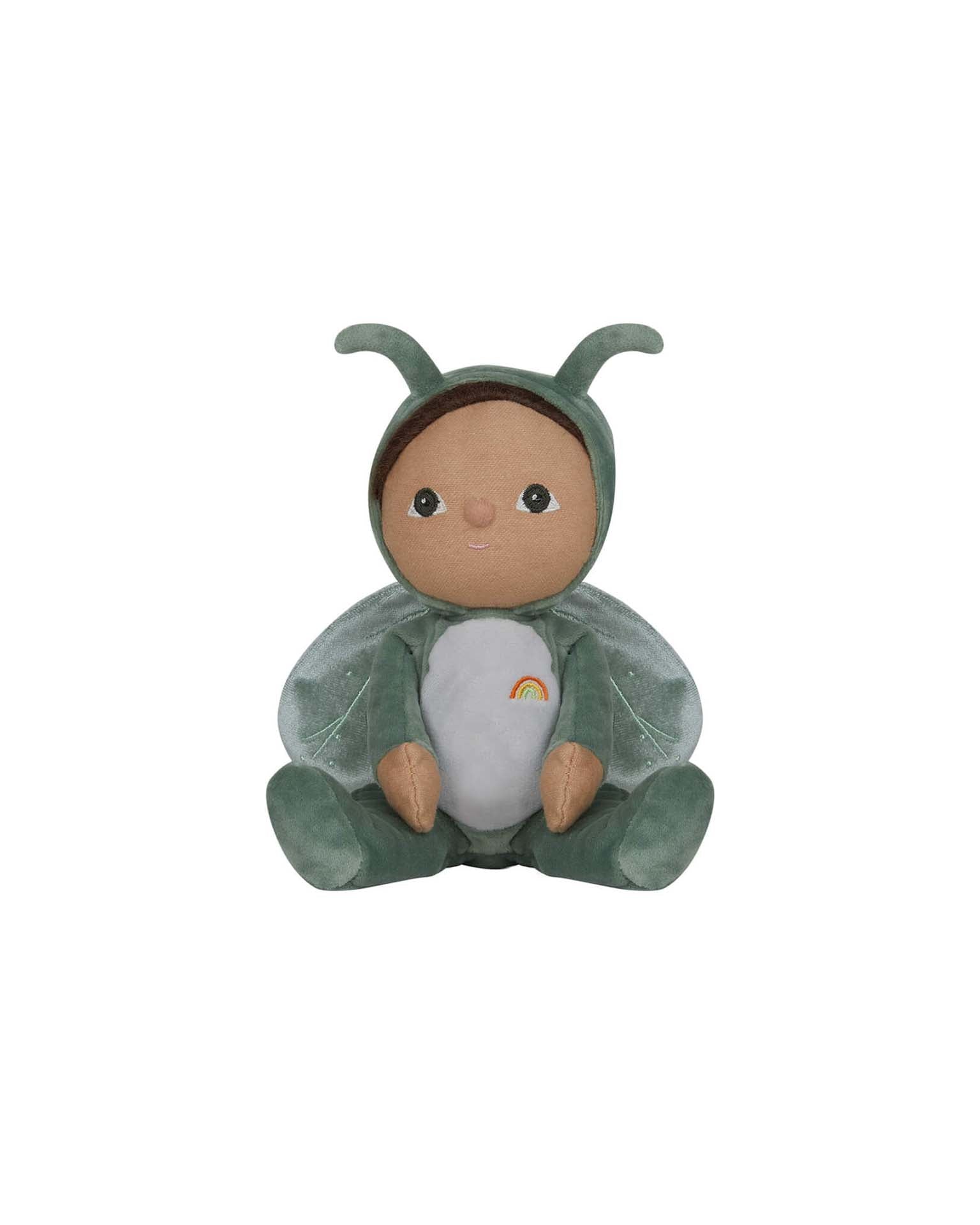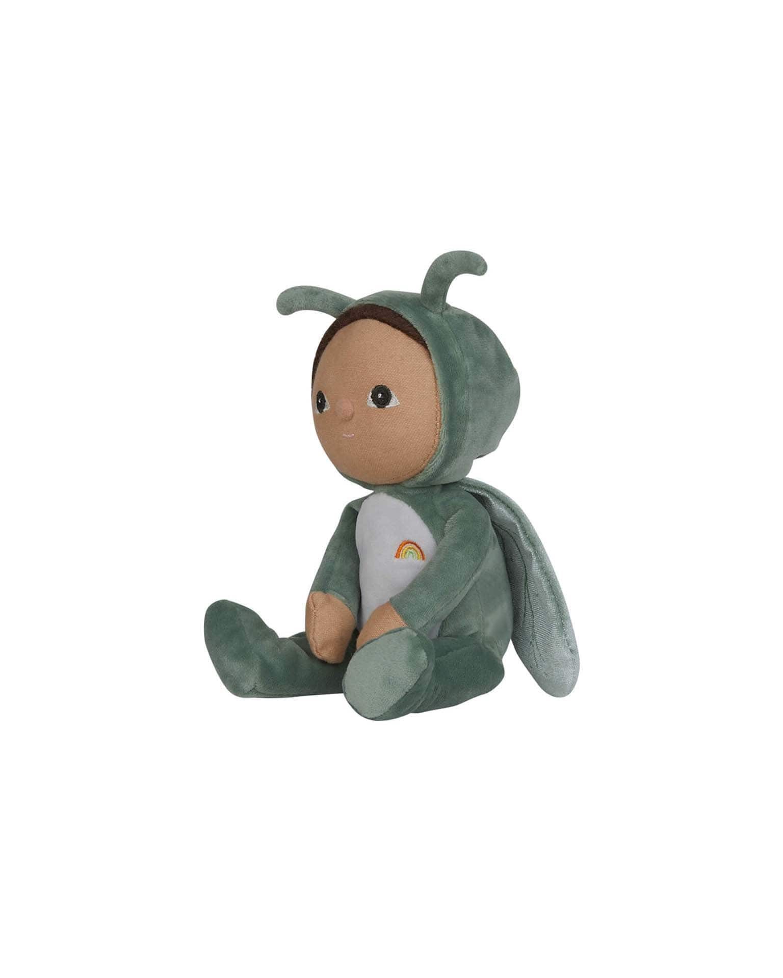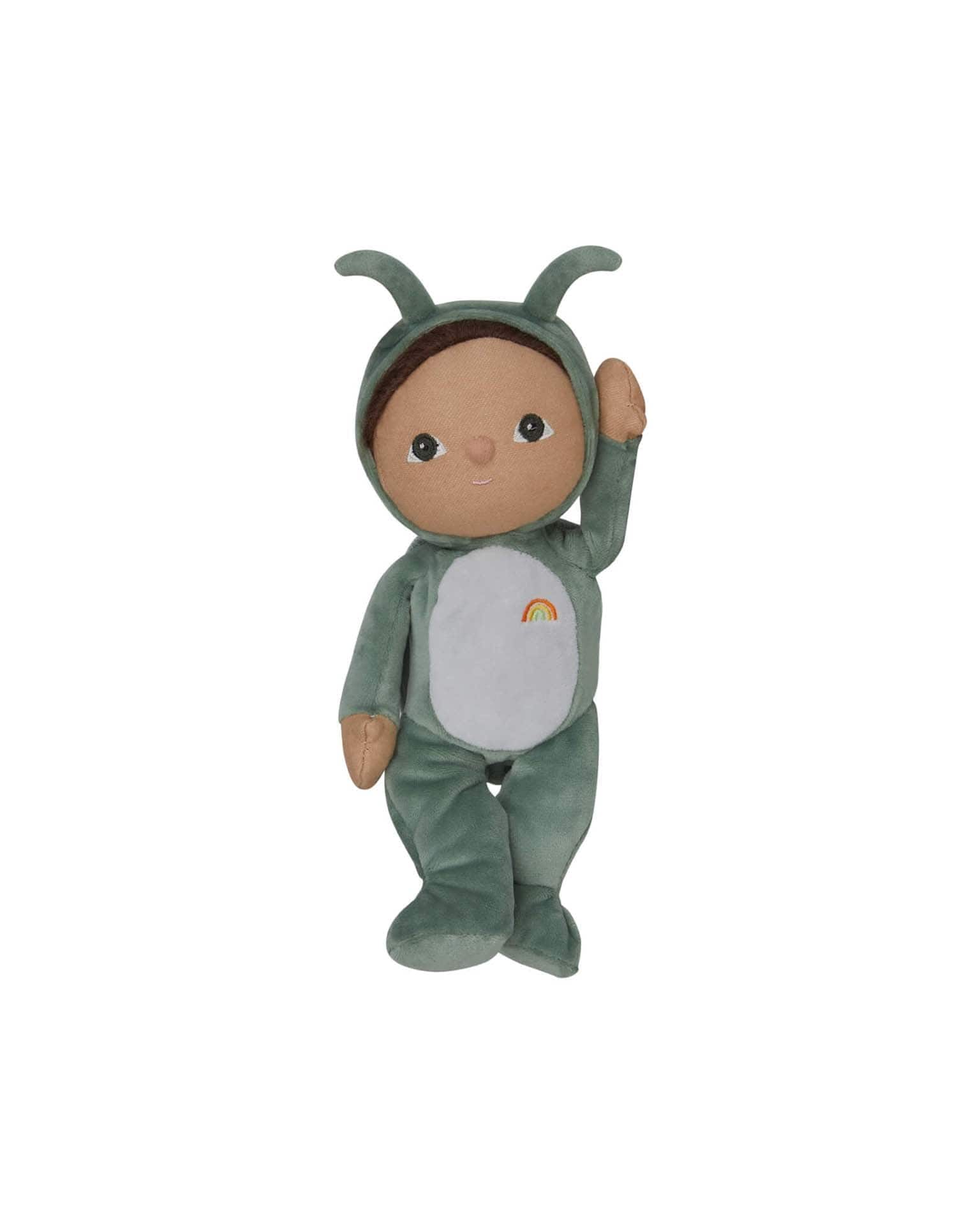 Gideon Grasshopper just loves to bounce, never still for long, there’s always something new to explore! Gideon is always mid-hop into the next backyard adventure. Dressed in a velvety soft green suit with shimmery wings and a matching little hood (complete with antennae, of course), this sprightly sidekick is made for movement, mischief, and maximum play.