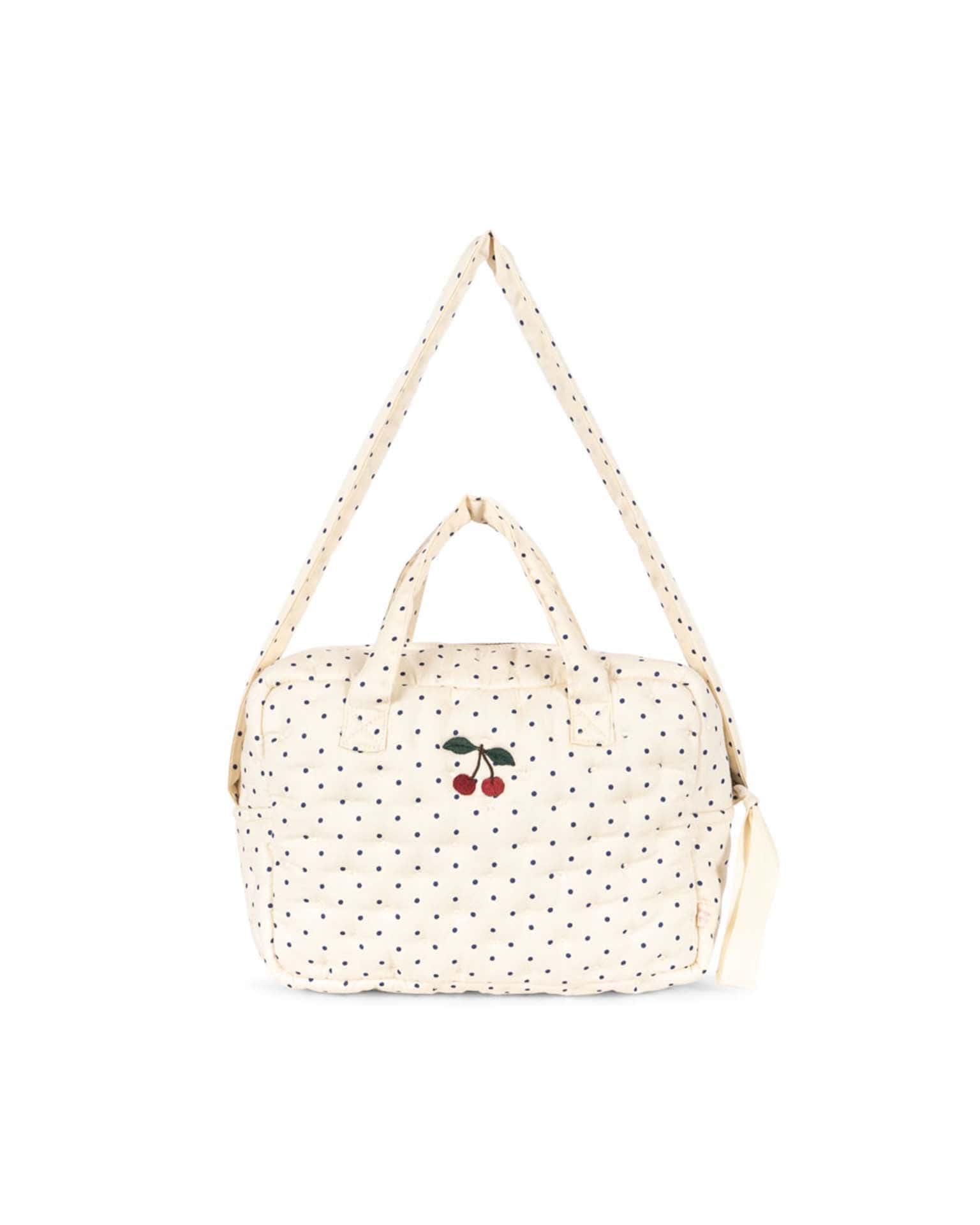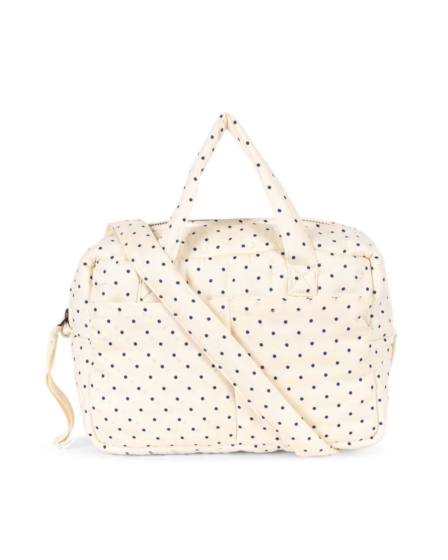 Practical doll changing bag. Designed with a shoulder strap, a large outside pocket, as well as a grab-and-go handle. The bag closes with a zipper. A must-have for all doll parents.
