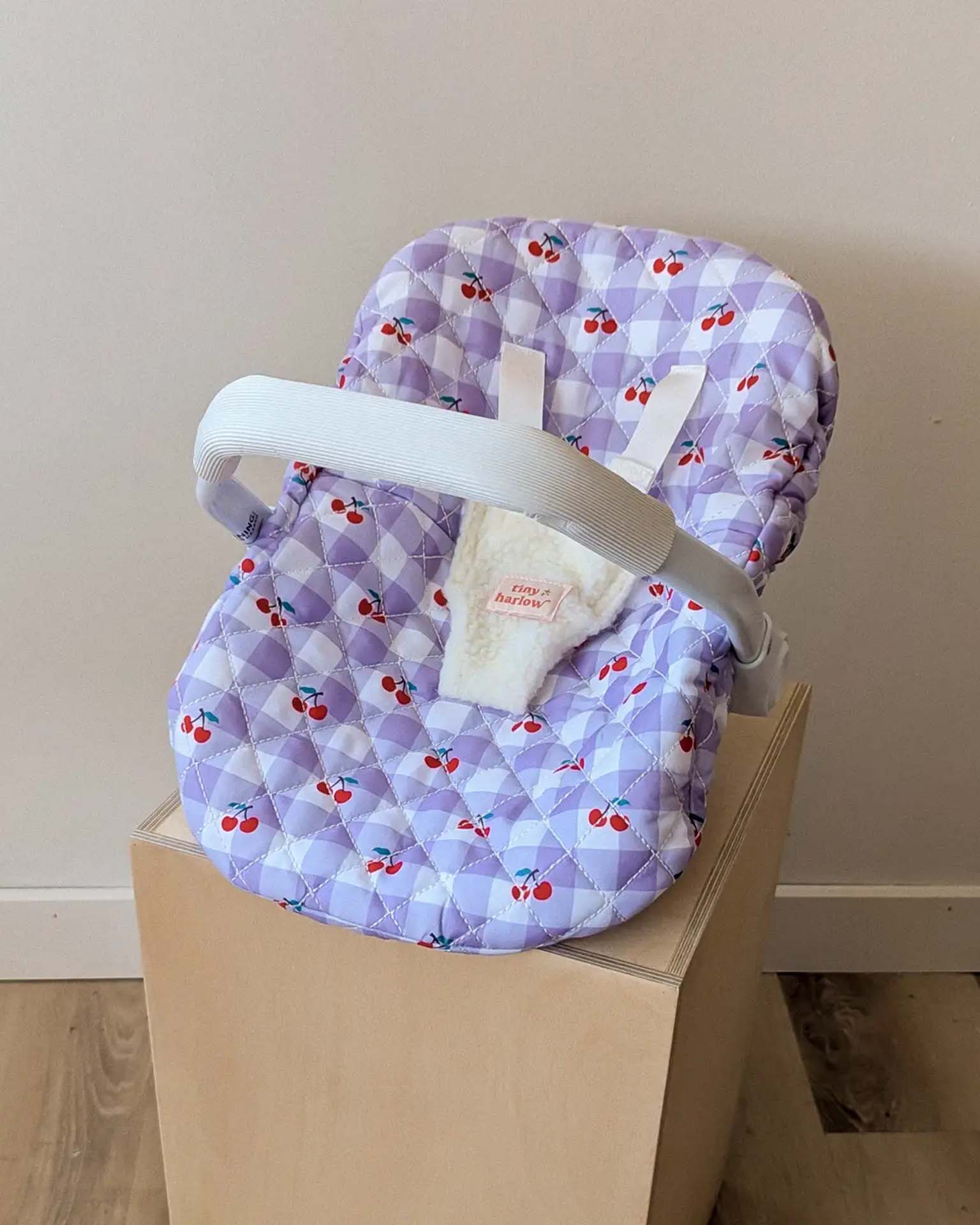 doll capsule in violet gingham cherry