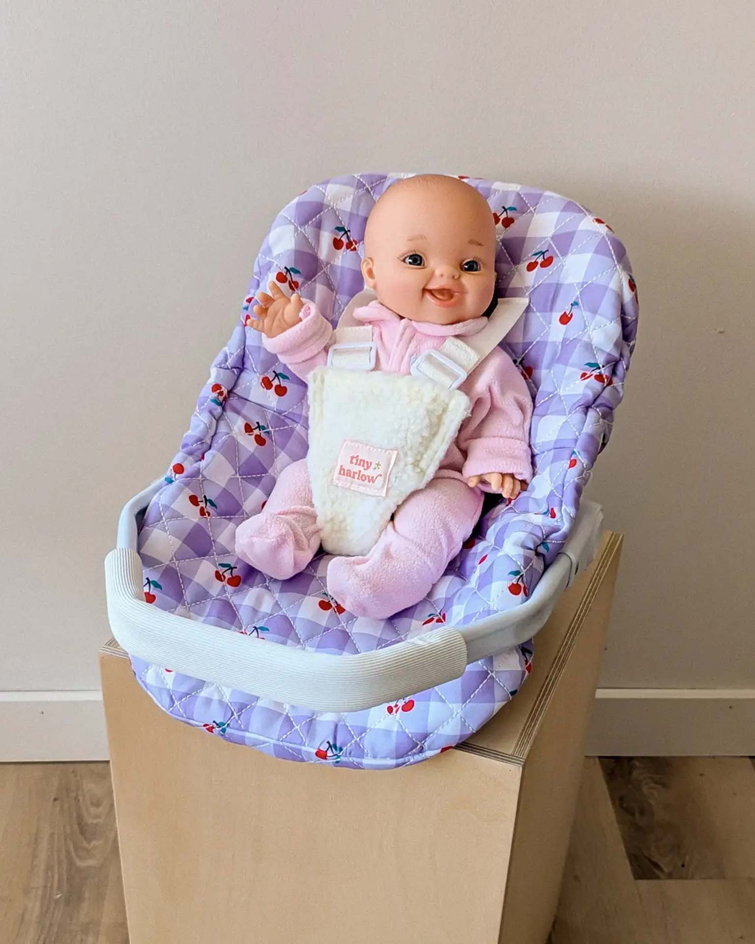 Introducing the Tiny Harlow capsule, perfect for carrying your precious doll! Practical, durable, and pretty, it will delight children who want to take their doll everywhere with them. The doll even attaches like a real baby, using a strap and a click closure! The handle can be placed on top for easy transport. The essential accessory for taking care of your doll!