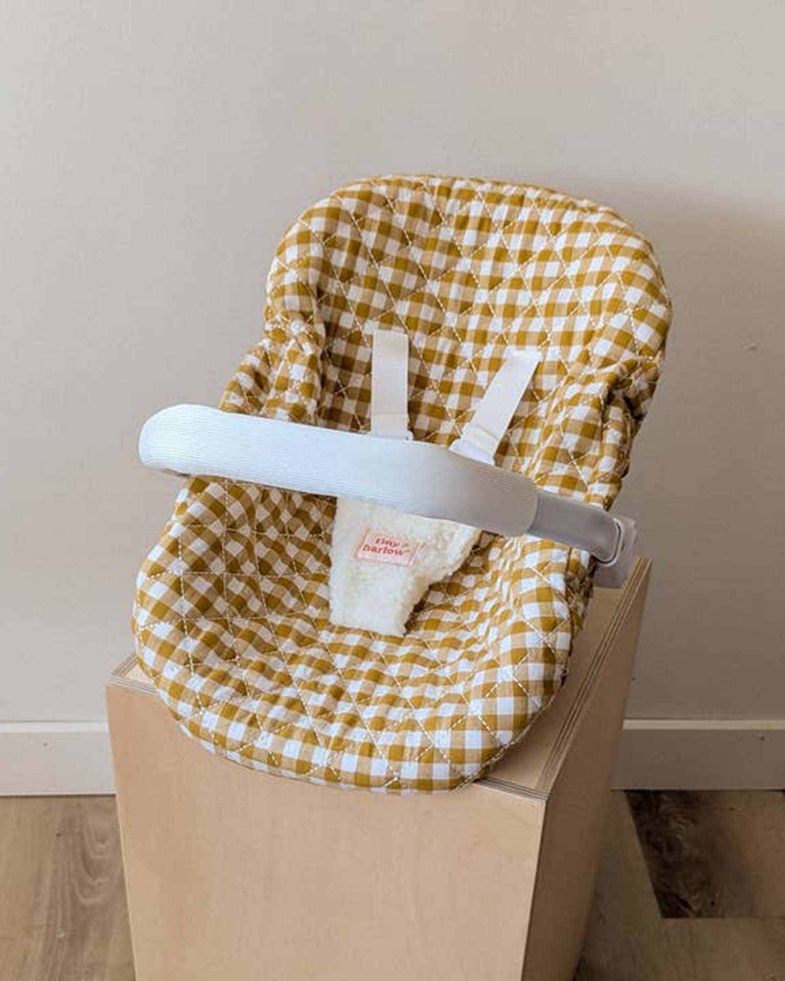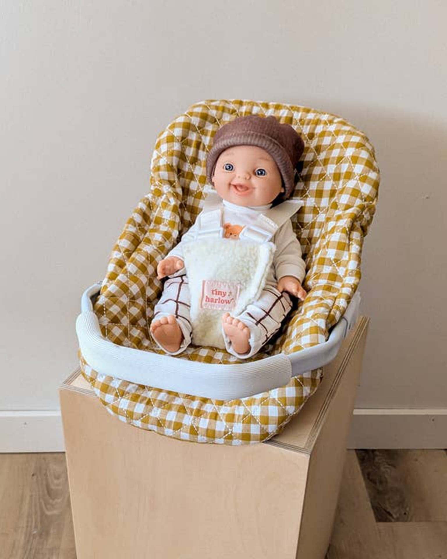 doll capsule in mustard gingham