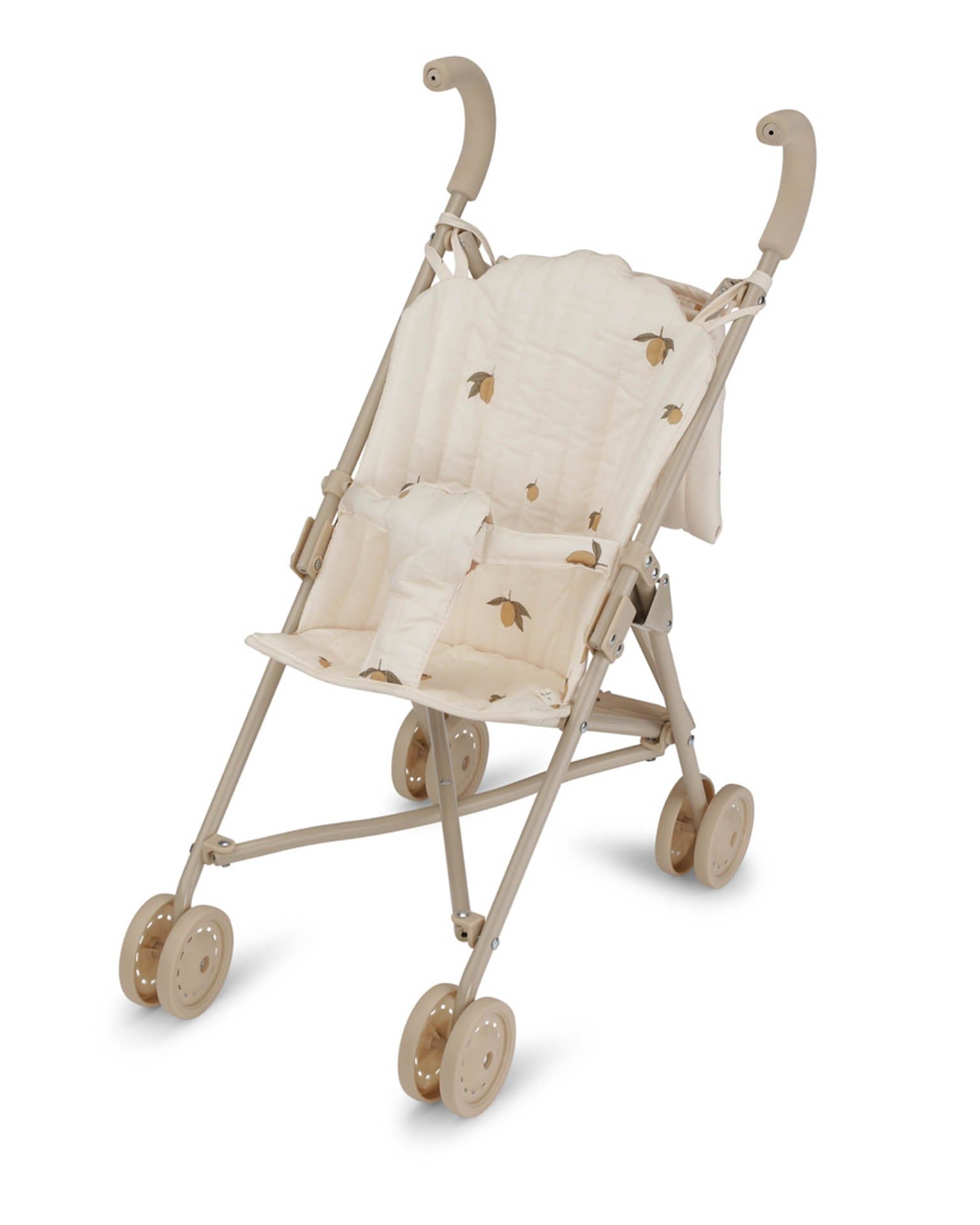 This classic umbrella stroller from Konges Sløjd will allow your little one to walk their baby doll (or favorite stuffed animal!) in style. Featuring a harness, carriage bag and double wheels on all four legs, this stroller even folds for easy storage.