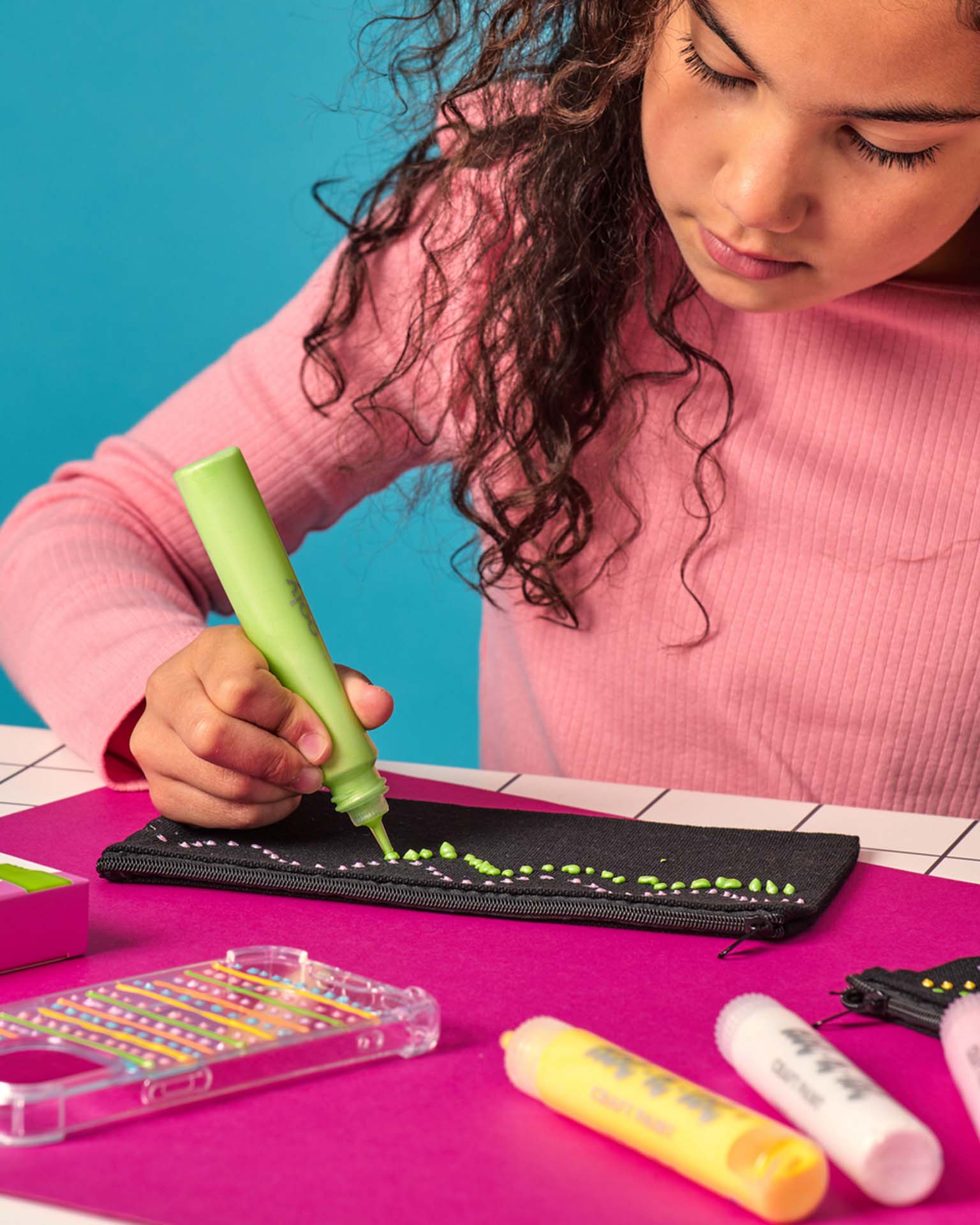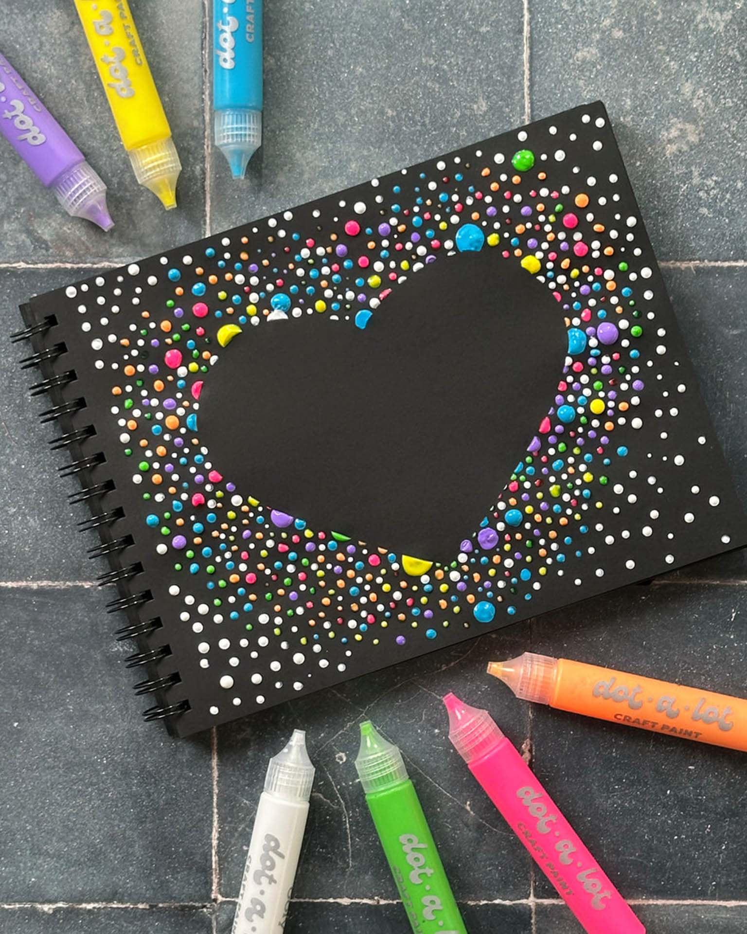 The tactile fun doesn’t stop there—Dot-a-Lot paints work on a wide variety of smooth and textured surfaces, including paper, wood, fabric, glass, and more. Use them to personalize T-shirts, canvas totes, school supplies, tech accessories, or simply create stunning stand-alone art pieces.