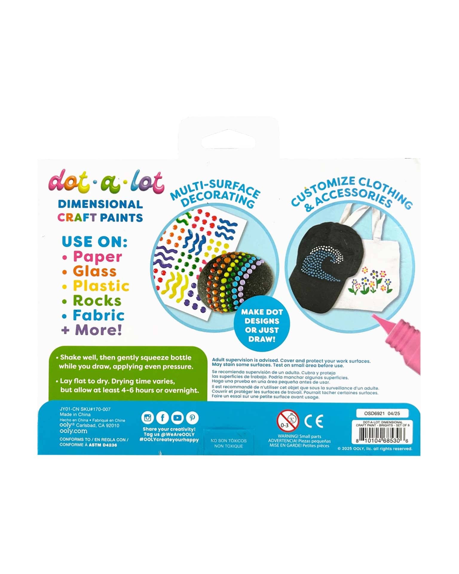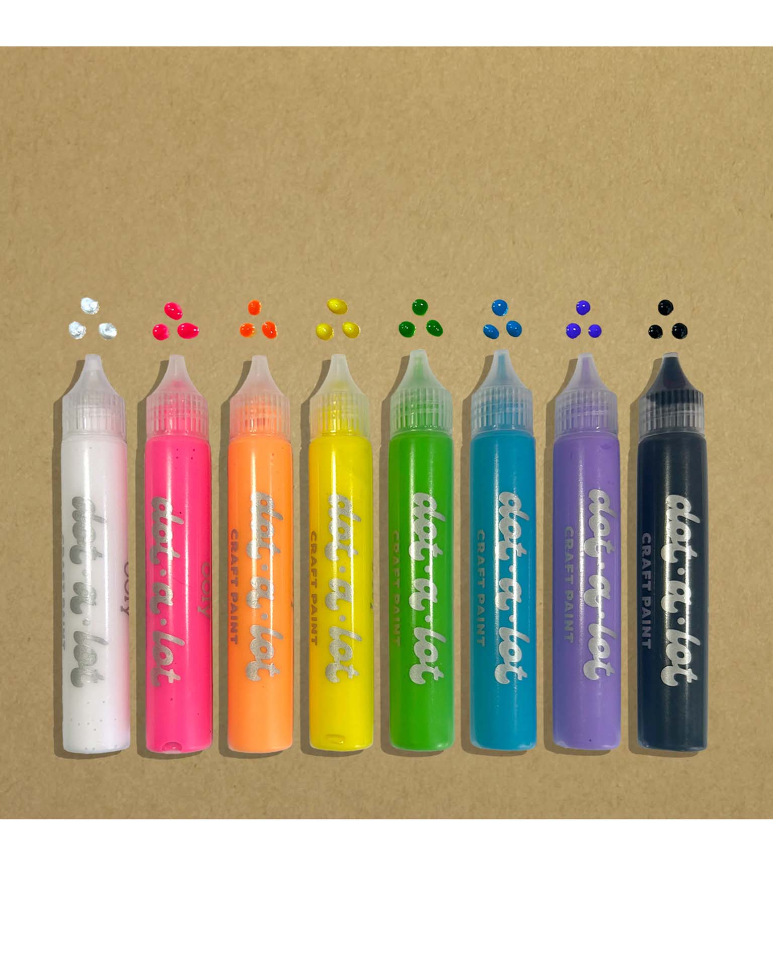Bring your art to life—literally—with Dot-a-Lot 3D Dimensional Craft Paint! This set of 8 bright, bold colored craft paints adds texture you can see and feel. Designed for dot painting, decorating, and mixed media projects, each paint dries with a raised finish that adds an irresistible pop of dimension to any creation.