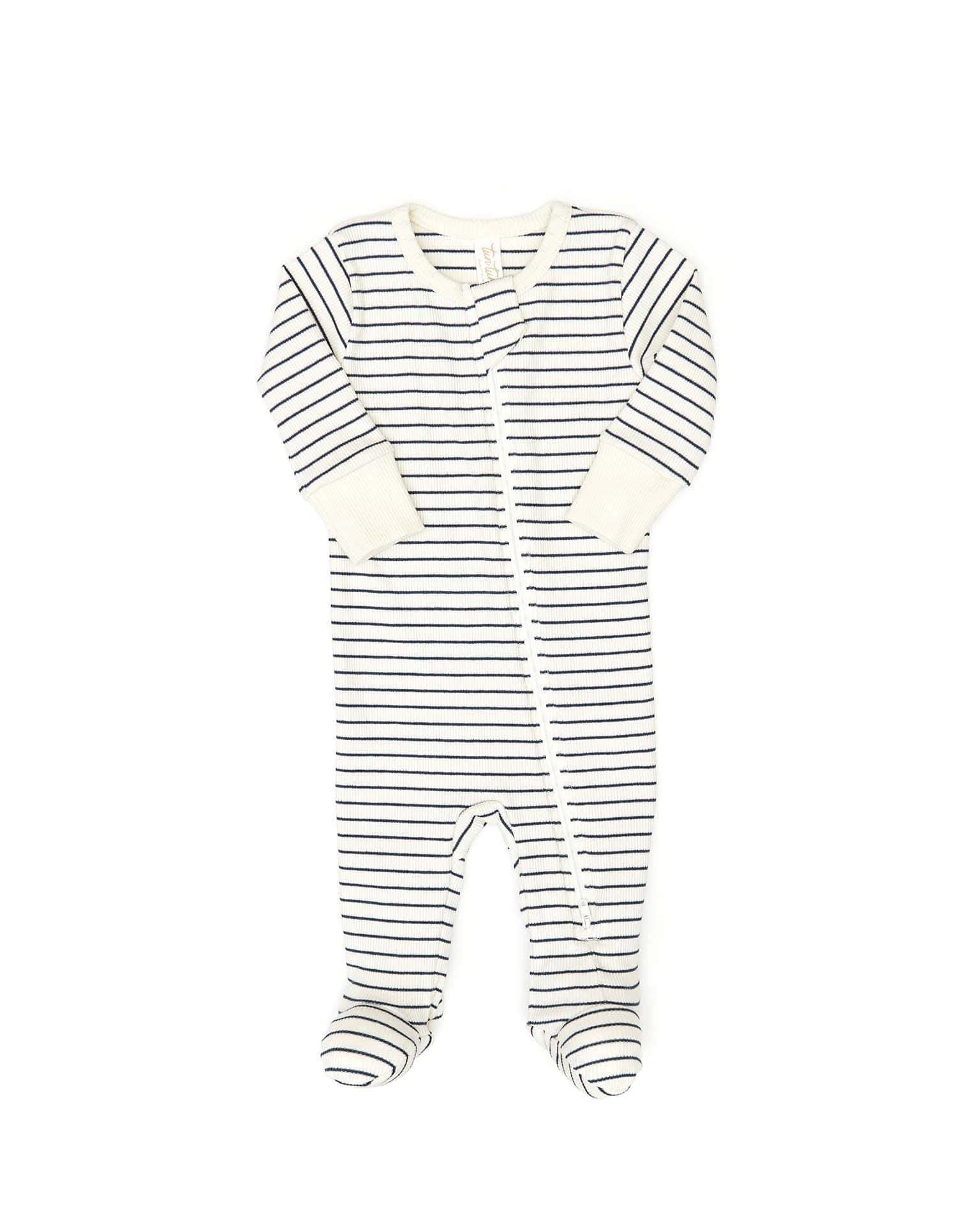double way zip ribbed footie in navy stripes