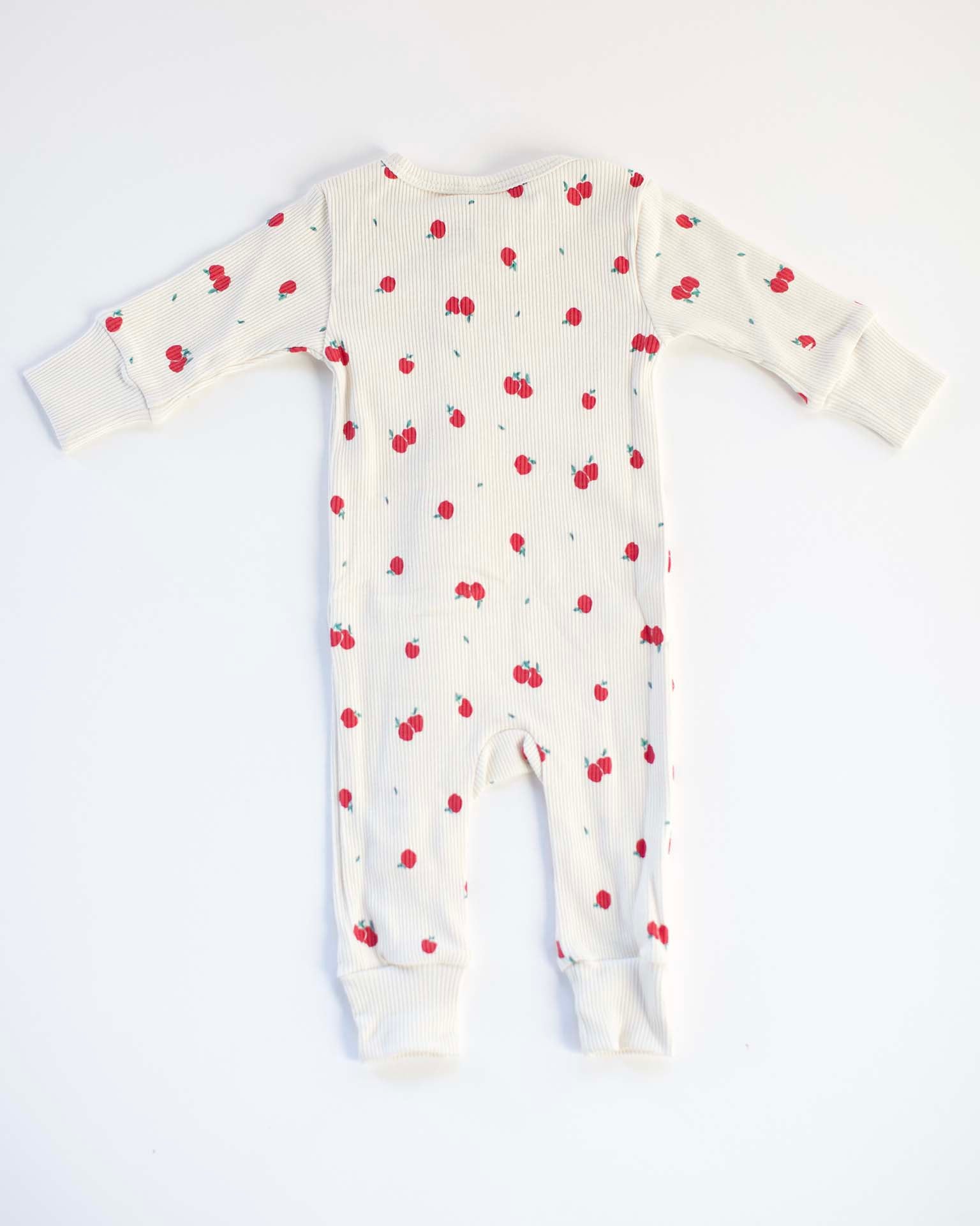 double way zip ribbed romper in white swan apples