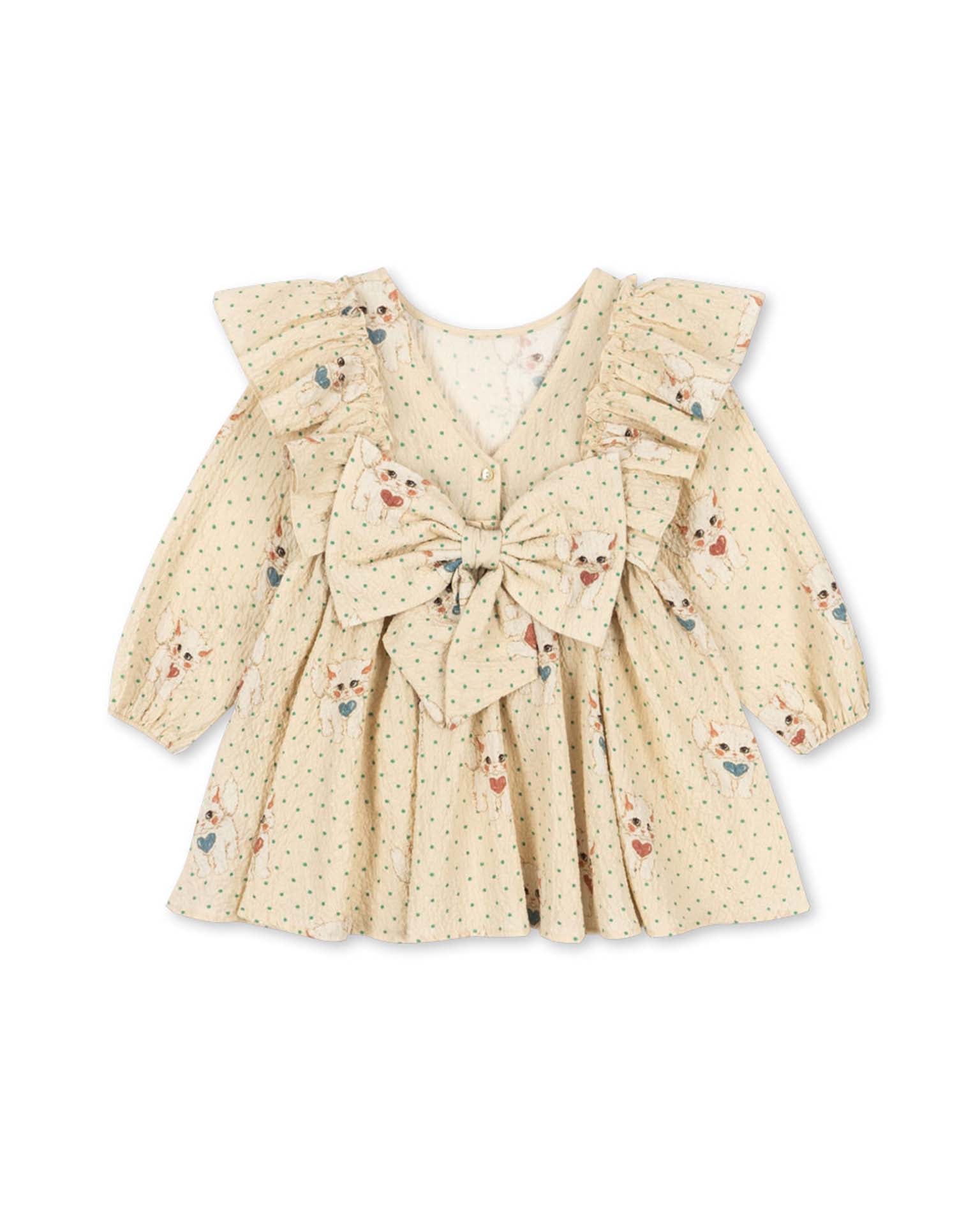elin bow dress in dot miao mist