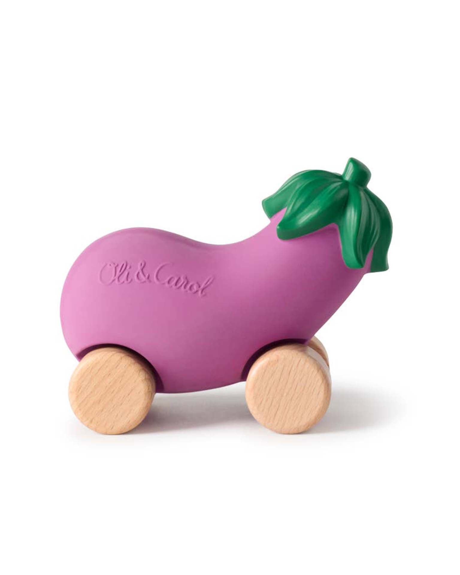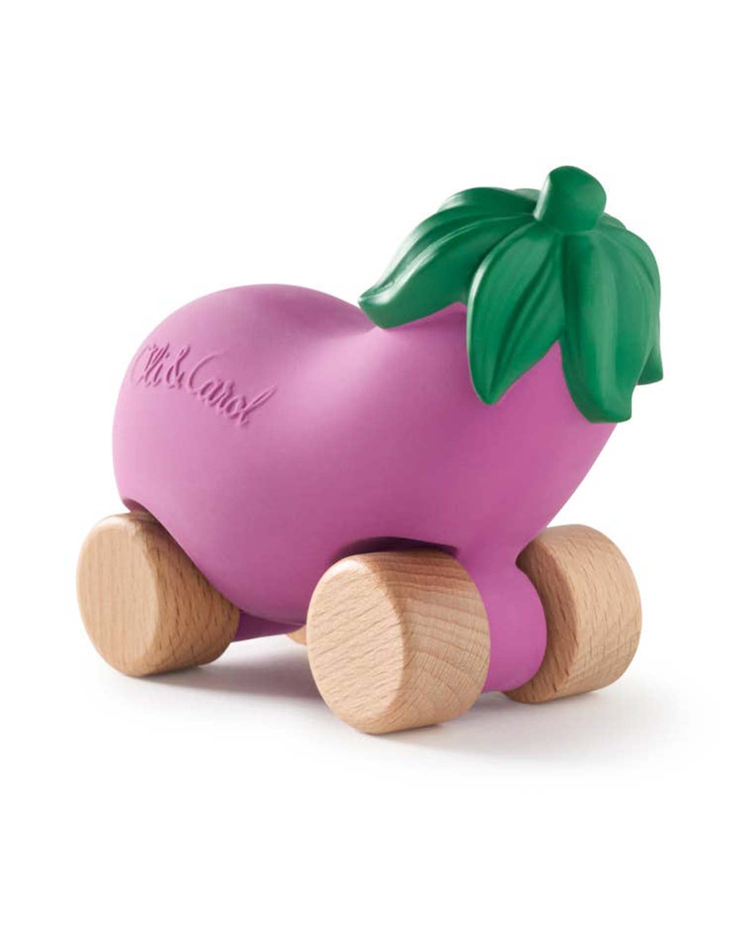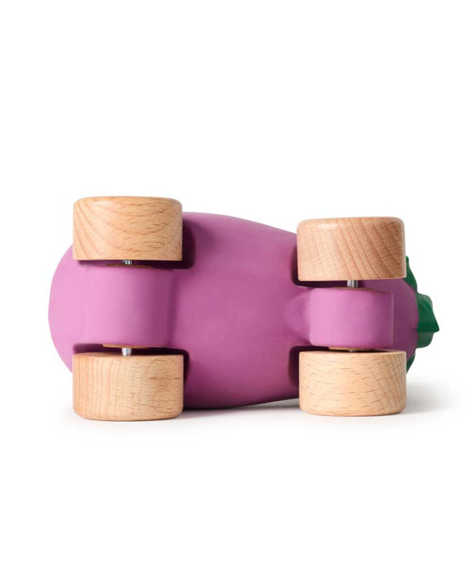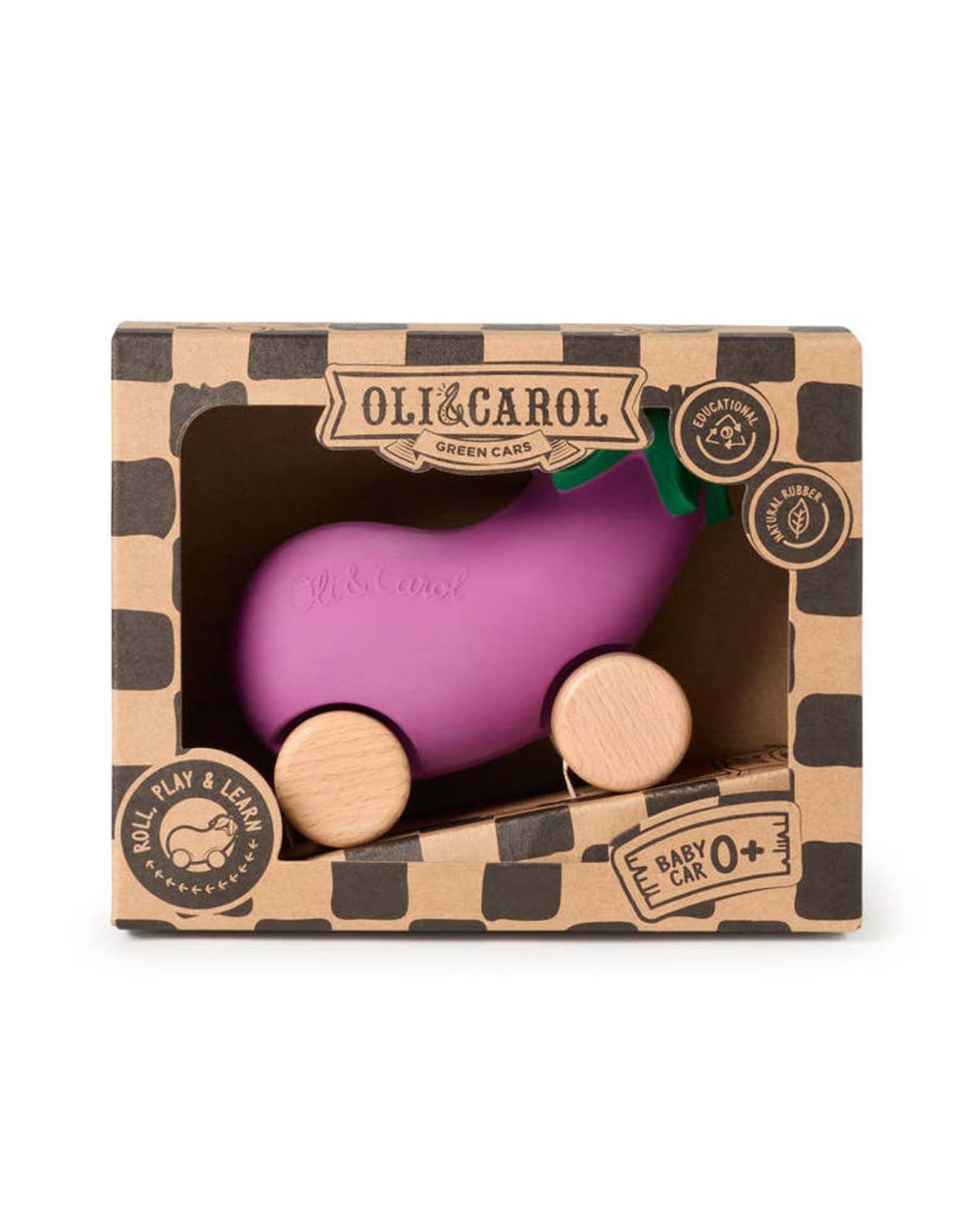 Meet Emma, the eco-friendly baby car toy! Crafted from natural rubber and FSC-certified wood, this adorable car features an eggplant-inspired design. Emma doesn't just provide fun; it also supports interactive play, cognitive development, and social skills. And with its packaging featuring a drop-down ramp, it adds to the enjoyment and reusability of playtime!