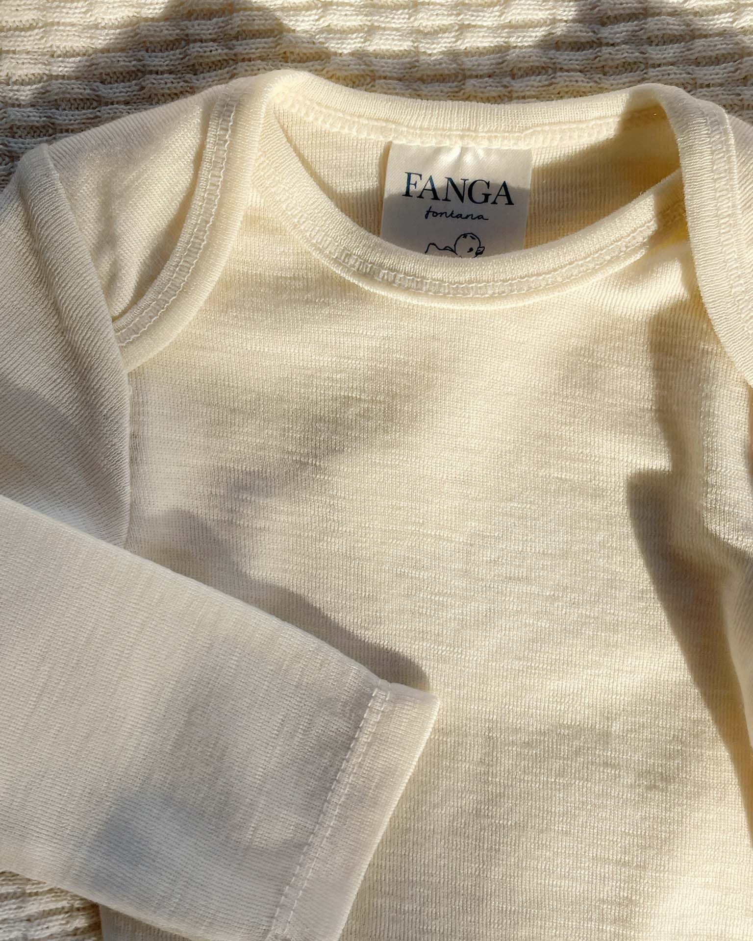 Our long-sleeved wool body is the perfect base layer for babies. Made from 100% merino wool, this piece is naturally soft, hypoallergenic, and helps regulate body temperature.