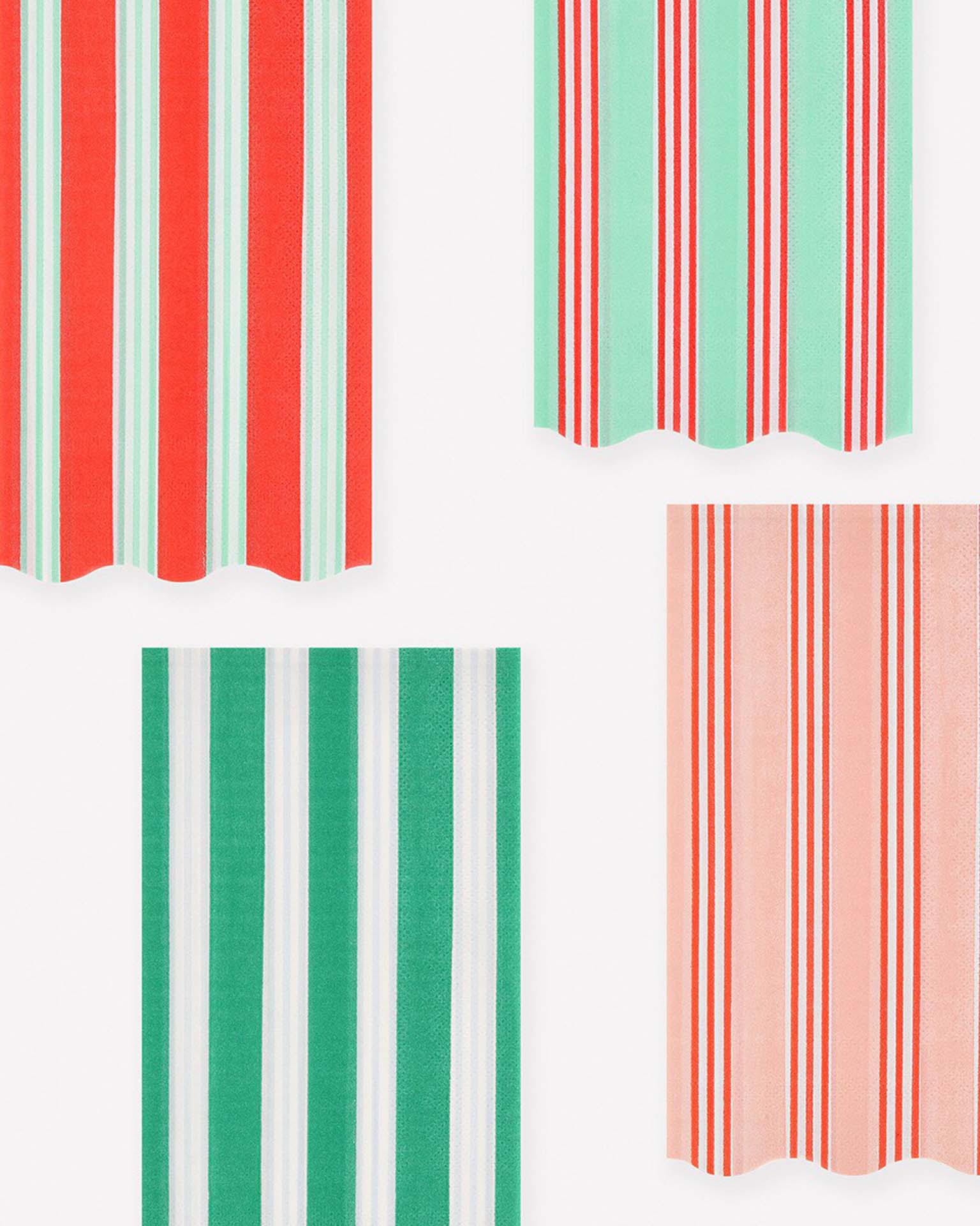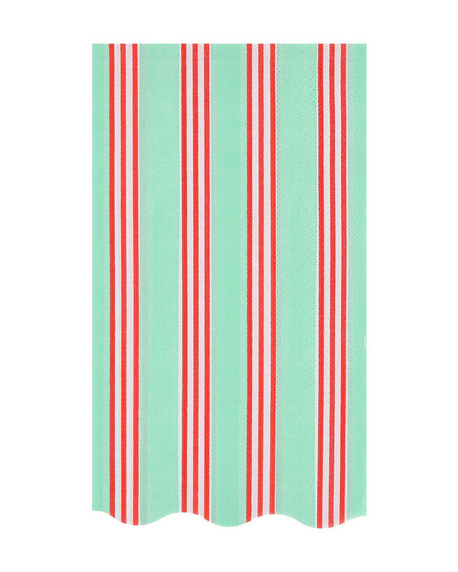 Why settle for plain colors when you can have a mix of statement stripes? These scalloped paper guest towels blend classic Christmas red and green hues with pink, mint and blue for a fresh feel. A chic and practical way to add a touch of tradition to the holidays. Ideal to place in your guest bathroom or to use on your party table.