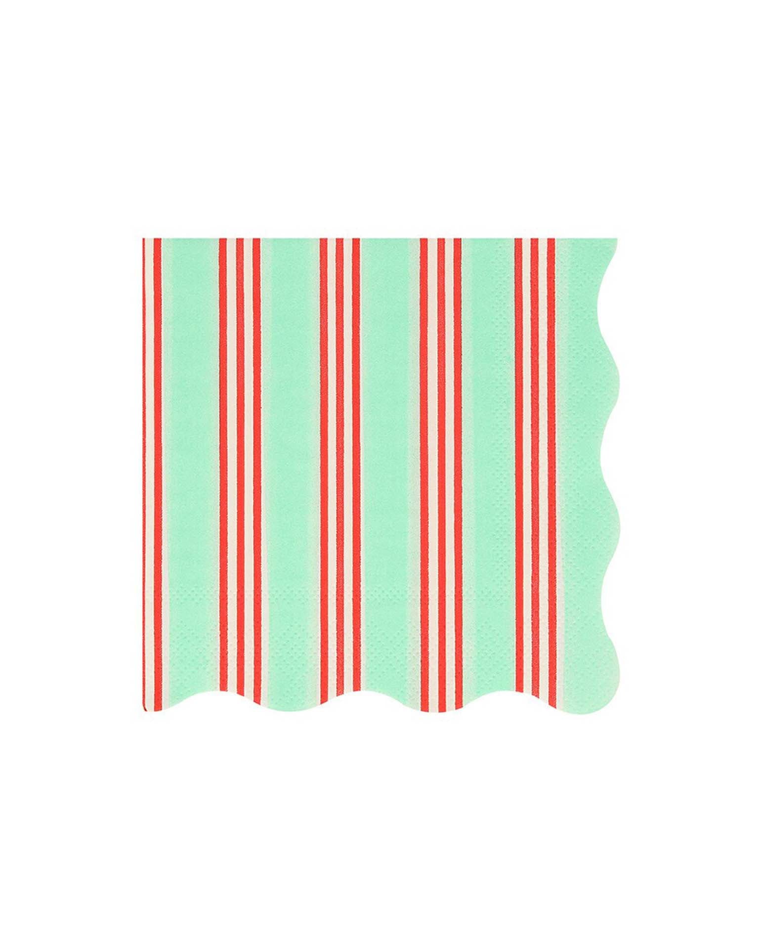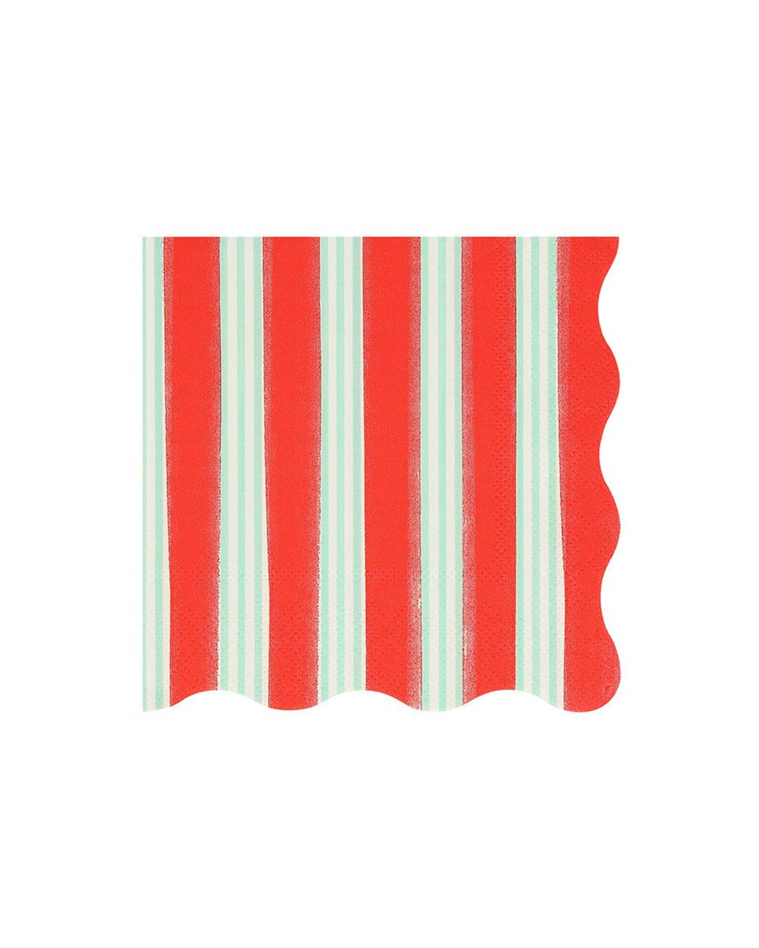 Bold stripes make a statement. Especially with our mix of traditional festive colors of red and green, with a modern pop of pink and blue, to keep things merry and bright. These fabulous small napkins, with stylish border details, are ideal to use for meals or Holiday cocktail parties.