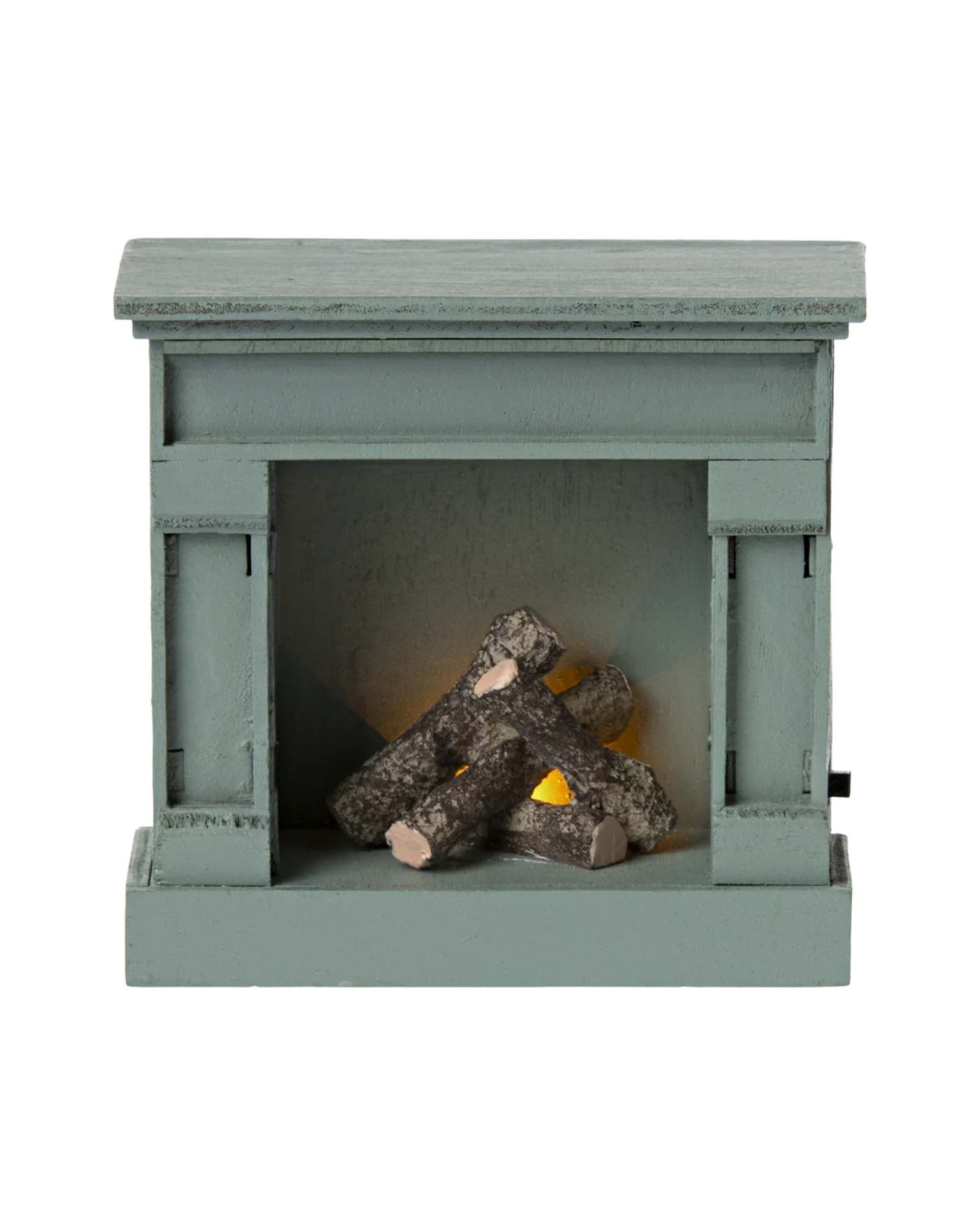 Use this wooden fireplace to warm your mouse home. It has an authentic look and a vintage finish. Remember to turn off when your friends go to bed. The product comes without a battery. You can add a coin cell battery (CR2032).