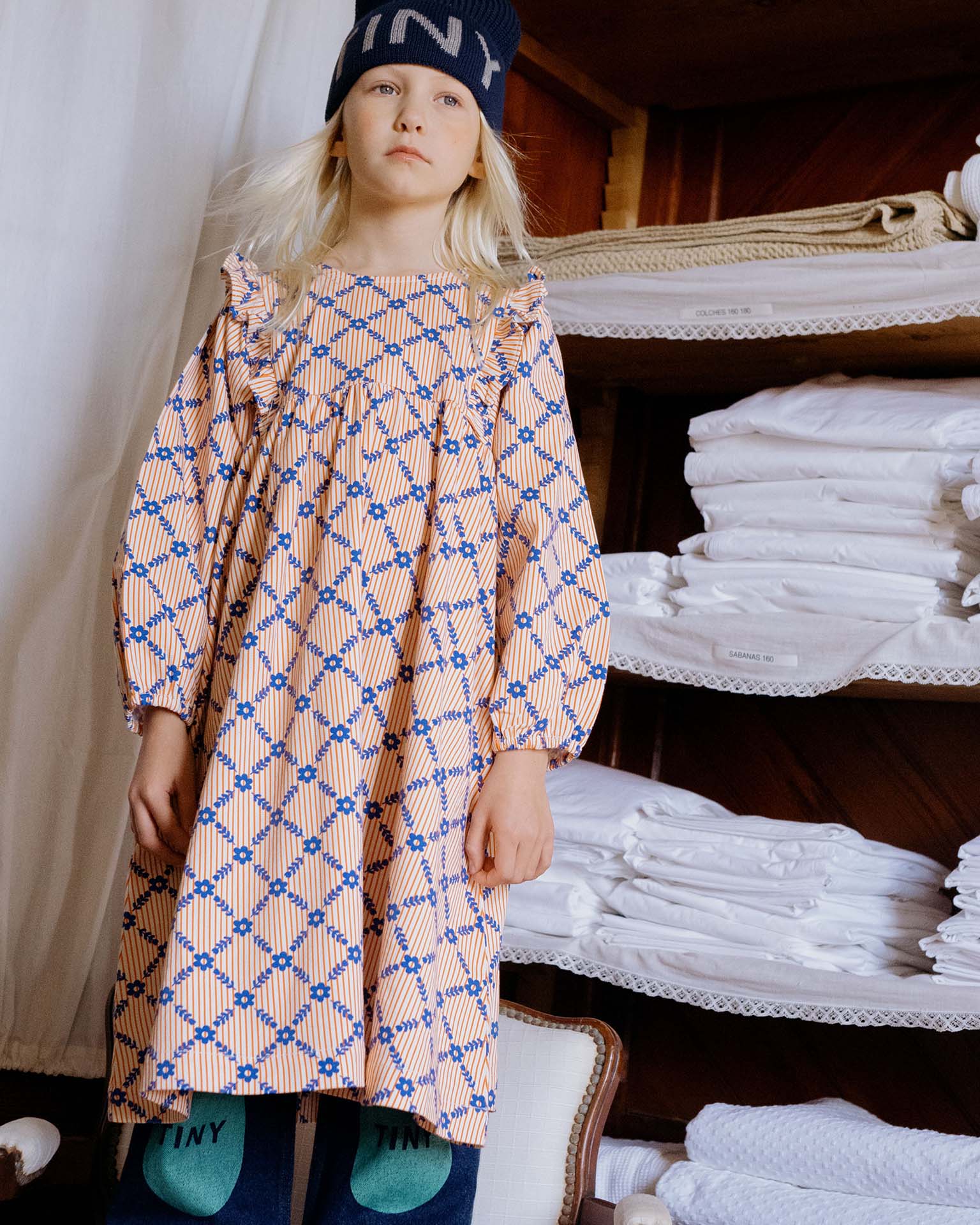 flower grid print dress
