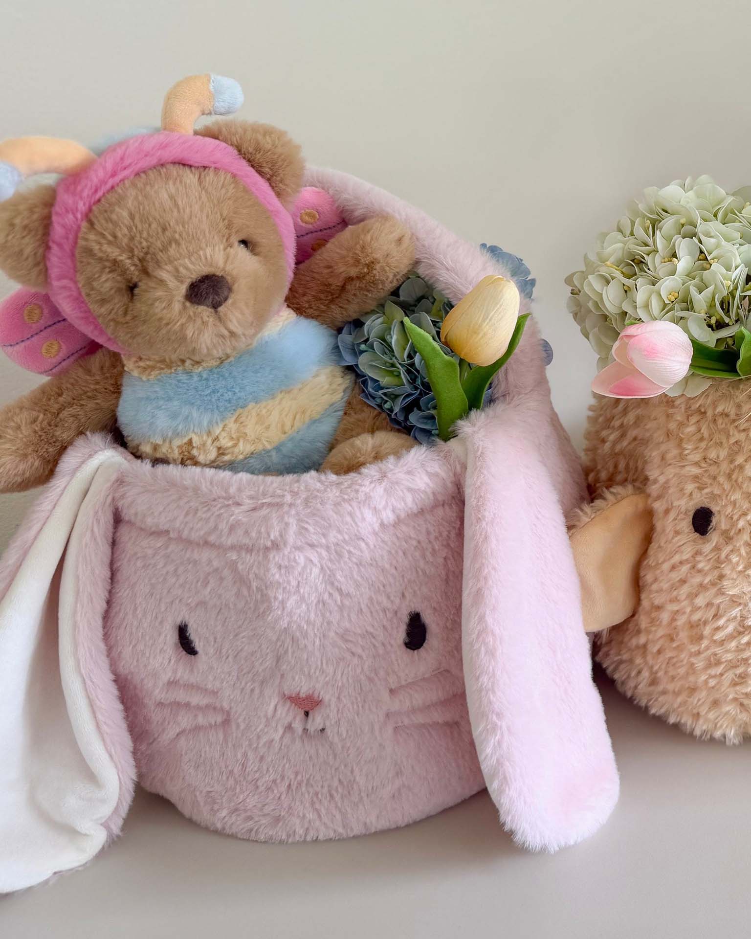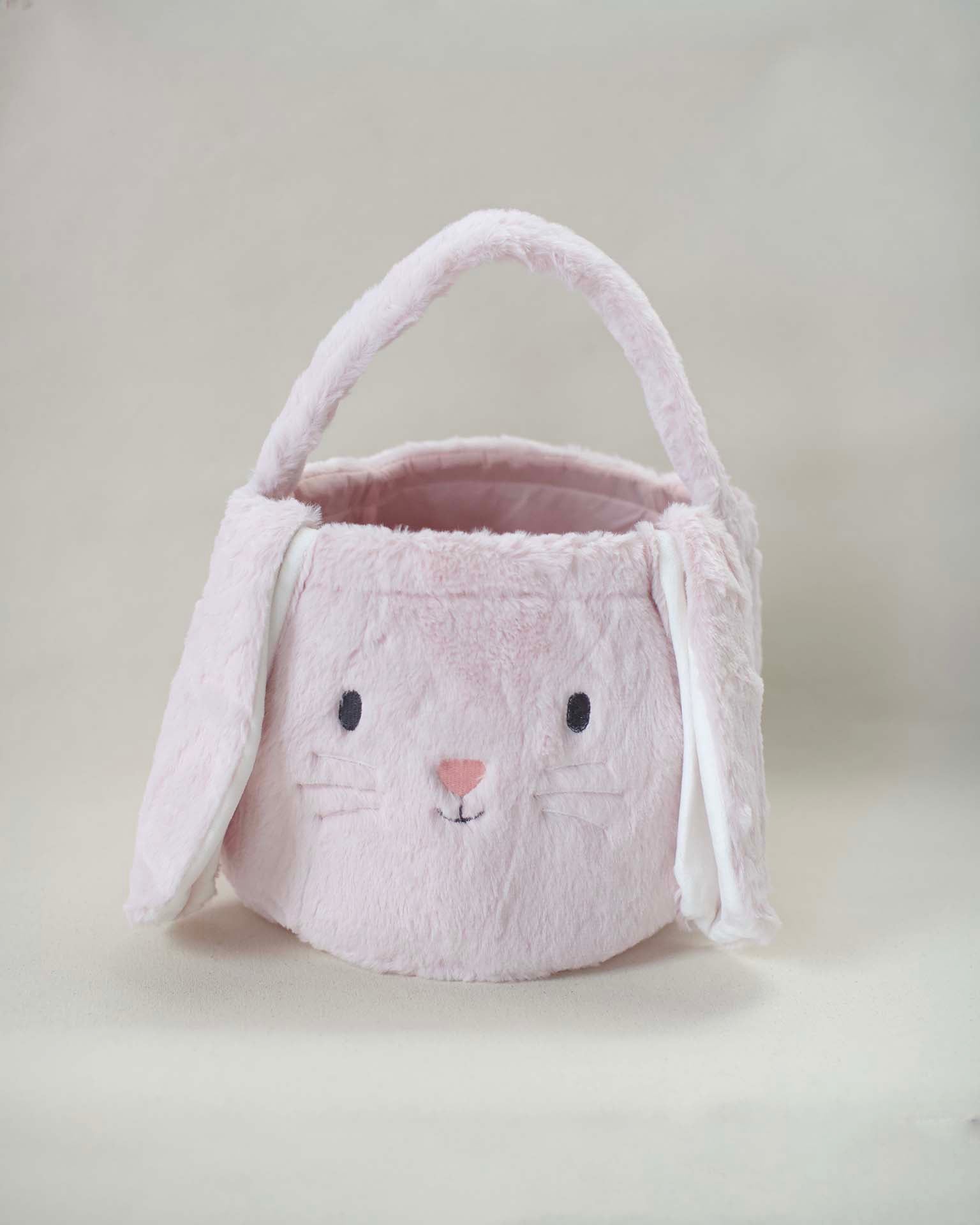fluffy bunny basket in pink